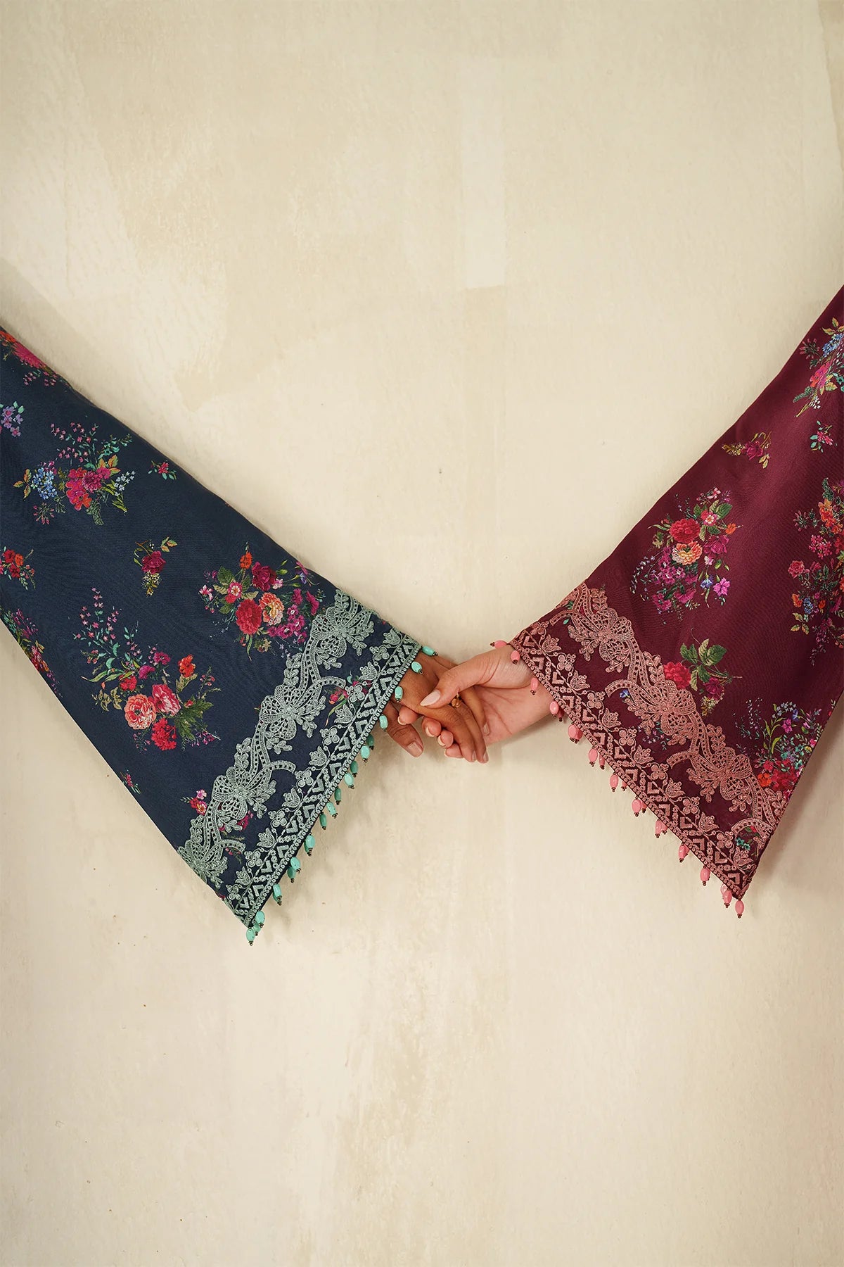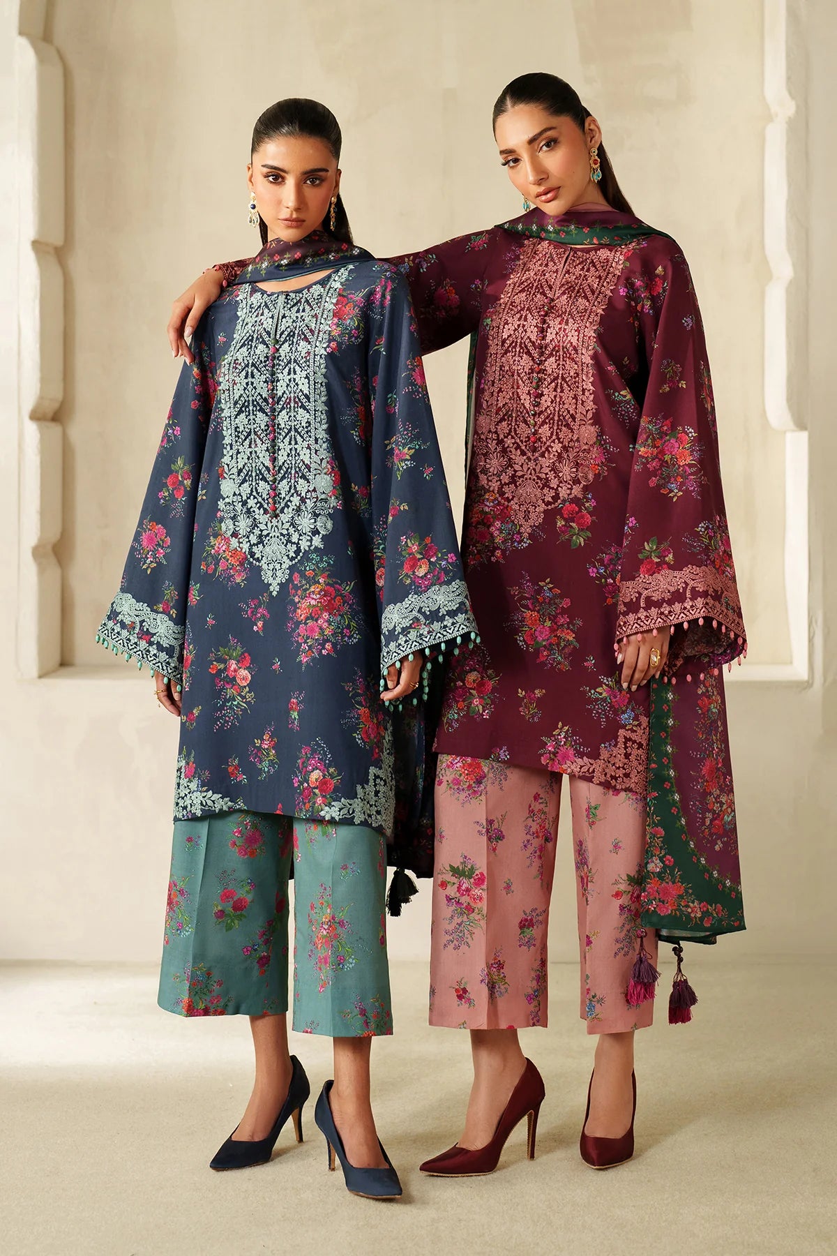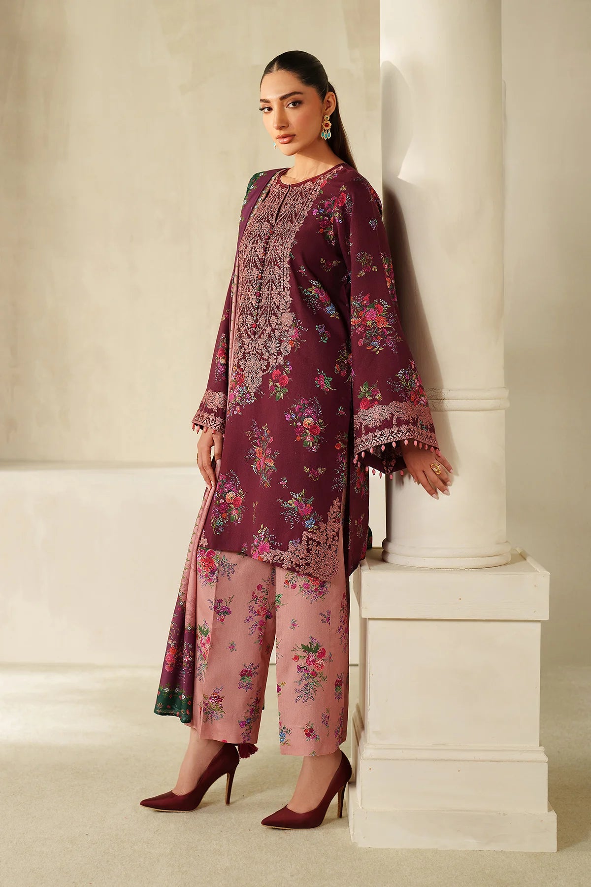 Elevate your wardrobe with this stunning three-piece ensemble featuring a digitally printed slub khaddar shirt and trouser set. The delicate embroidered organza neckline patch and intricately detailed sleeve borders add an elegant touch of sophistication. Paired with a beautifully printed pashmina shawl, this collection brings together comfort and style for any occasion. Perfect for those who appreciate quality craftsmanship and timeless design.