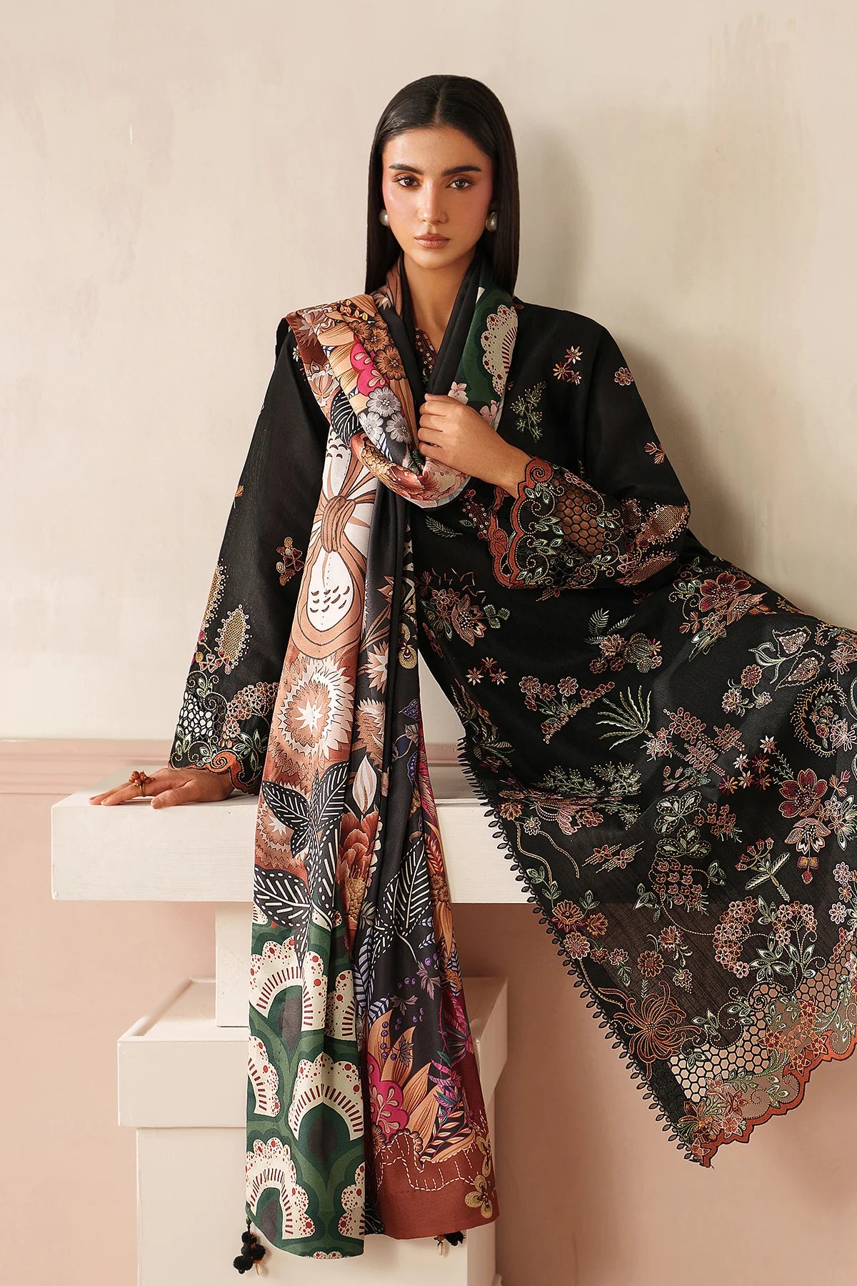 Elevate your wardrobe with this stunning embroidered khaddar ensemble that celebrates traditional craftsmanship. The front and sleeves feature intricate embroidery on premium slub khaddar, complemented by delicate organza patches at the sleeves and elegant borders adorning the front and back. A refined silk neckline patch adds a luxurious finishing touch. The coordinating dyed slub khaddar back and trouser provide a cohesive look, while the included digital printed pashmina shawl completes your sophisticated outfit. Perfect for special occasions or elevating your everyday style with timeless elegance.