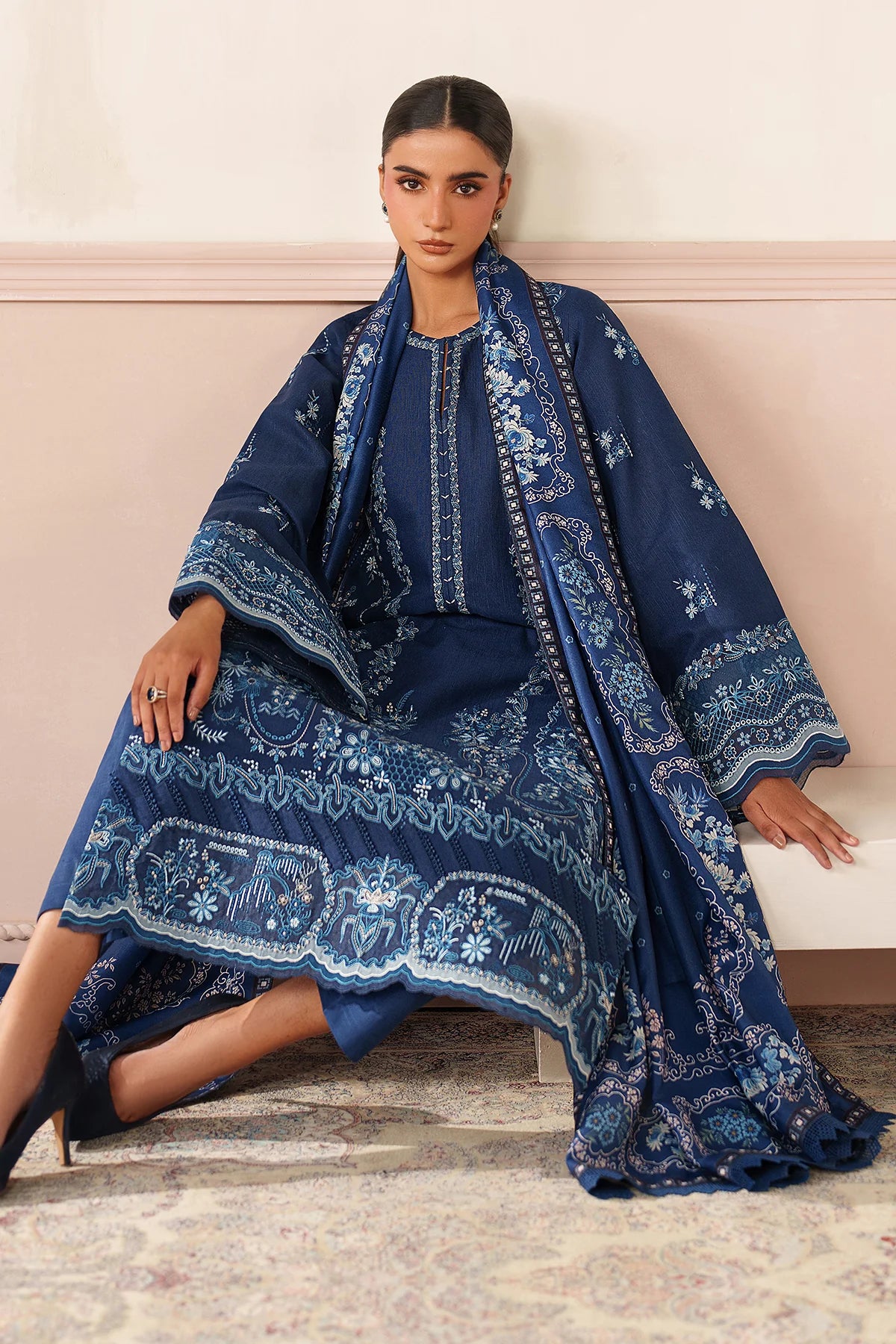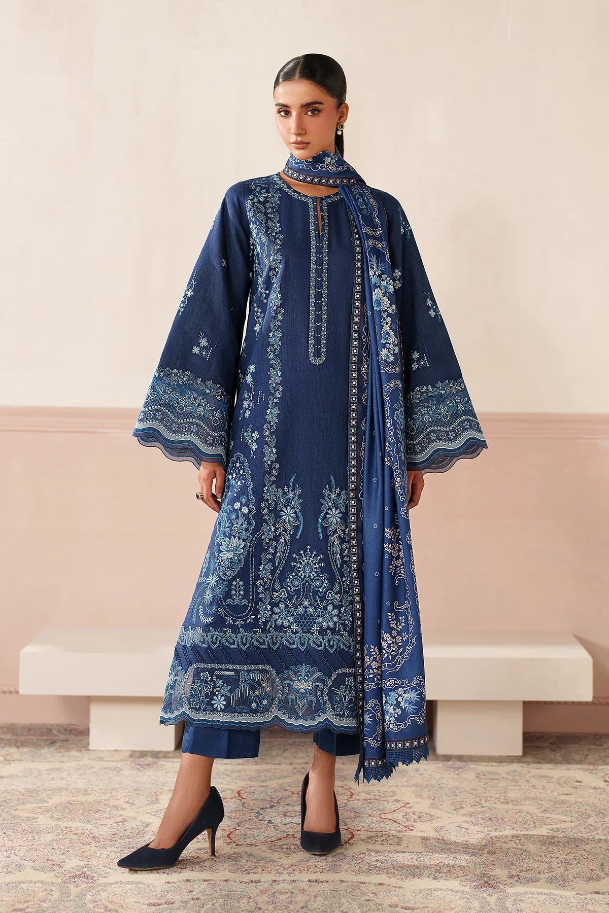 Elevate your wardrobe with this exquisite embroidered khaddar ensemble. The front and sleeves showcase intricate embroidery on premium slub khaddar fabric, complemented by delicate organza borders adorned with detailed threadwork. The coordinating digital printed pashmina shawl features an elegantly embroidered organza border, completing this sophisticated three-piece collection. Perfect for special occasions, this piece combines traditional craftsmanship with refined elegance, offering you a timeless look that celebrates artisanal detail and quality fabrics.
