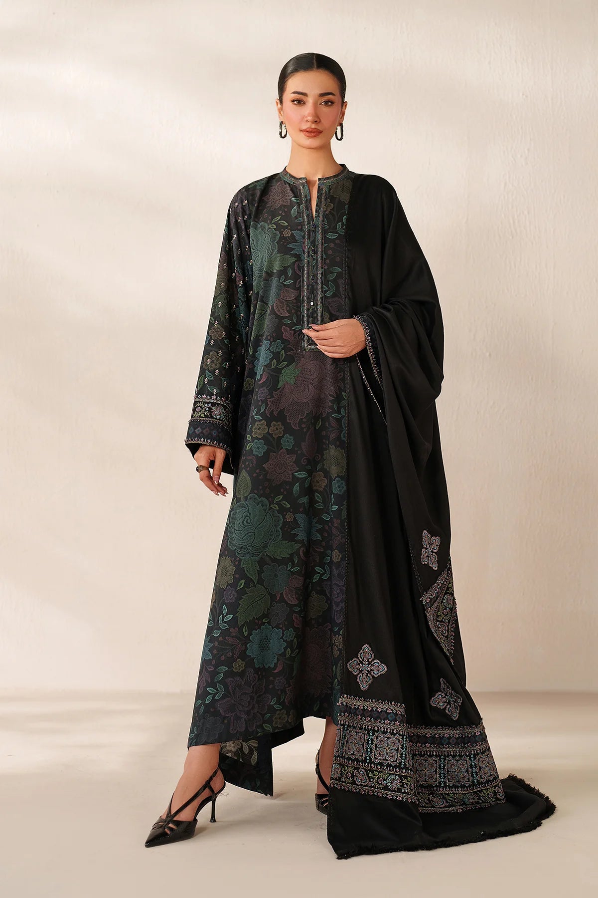 Elevate your wardrobe with this stunning three-piece ensemble featuring premium slub khaddar craftsmanship. The shirt and trouser showcase intricate digital prints paired with delicate embroidery on the sleeves and neckline, creating a refined silhouette. Complementing the set is a luxurious pashmina shawl adorned with ornate embroidered organza borders and motifs. Perfect for special occasions or elevated everyday wear, this collection combines traditional artistry with contemporary design, offering you timeless elegance and sophisticated style.