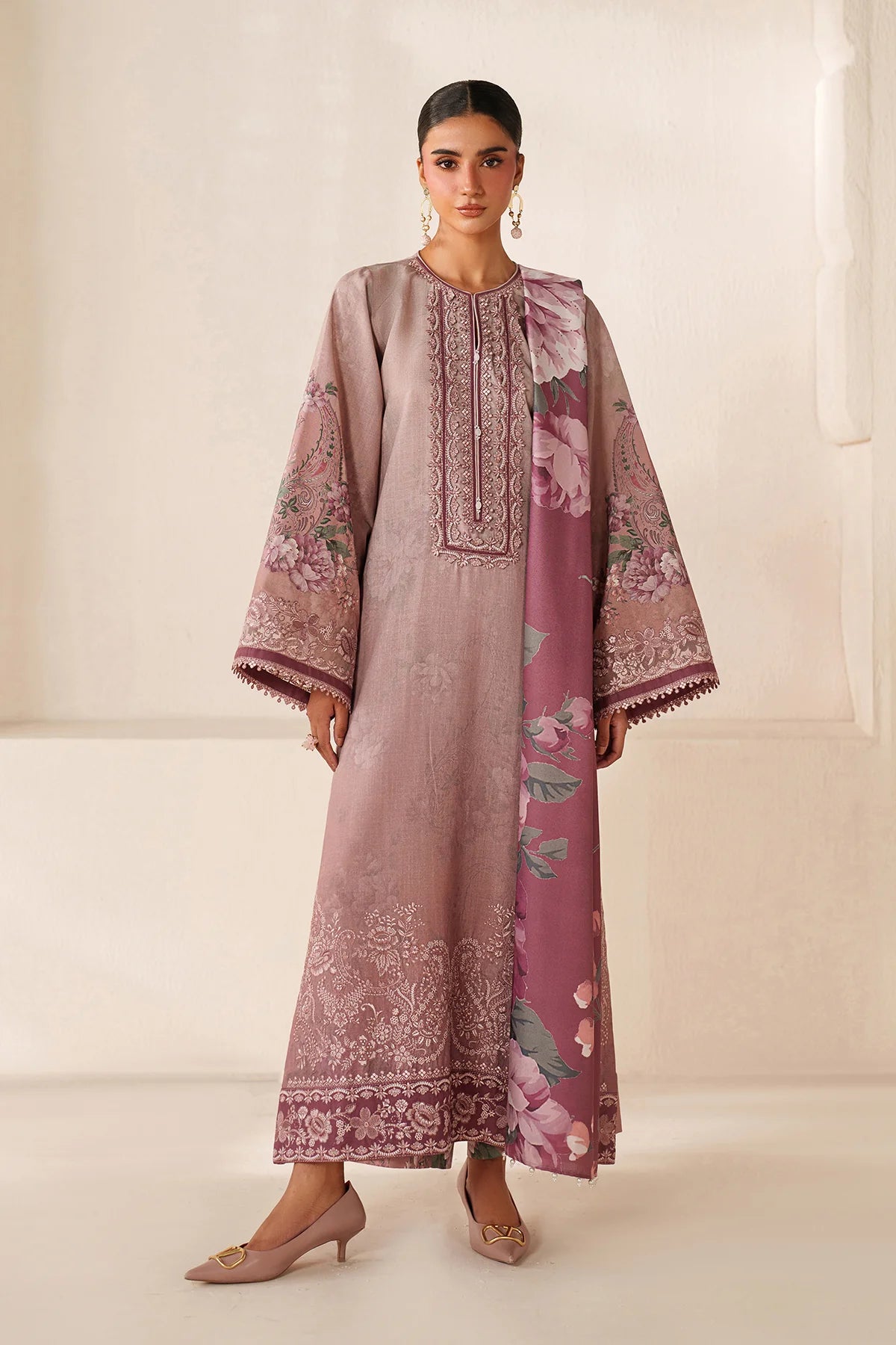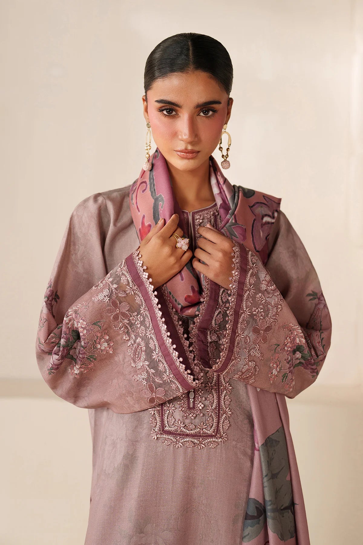 Elevate your wardrobe with this stunning three-piece ensemble featuring a digitally printed slub khaddar shirt and trouser set. The design showcases intricate embroidered details including an ornate organza neckline patch, decorative front patch, and beautifully embroidered khaddar front border. Delicate embroidered organza sleeves add refined elegance to every movement. Complete the look with the coordinating digital printed pashmina shawl, perfect for layering and versatility. Crafted with quality fabrics and meticulous embroidery work, this collection celebrates traditional craftsmanship with contemporary style, making it an ideal choice for special occasions or elevated everyday wear.