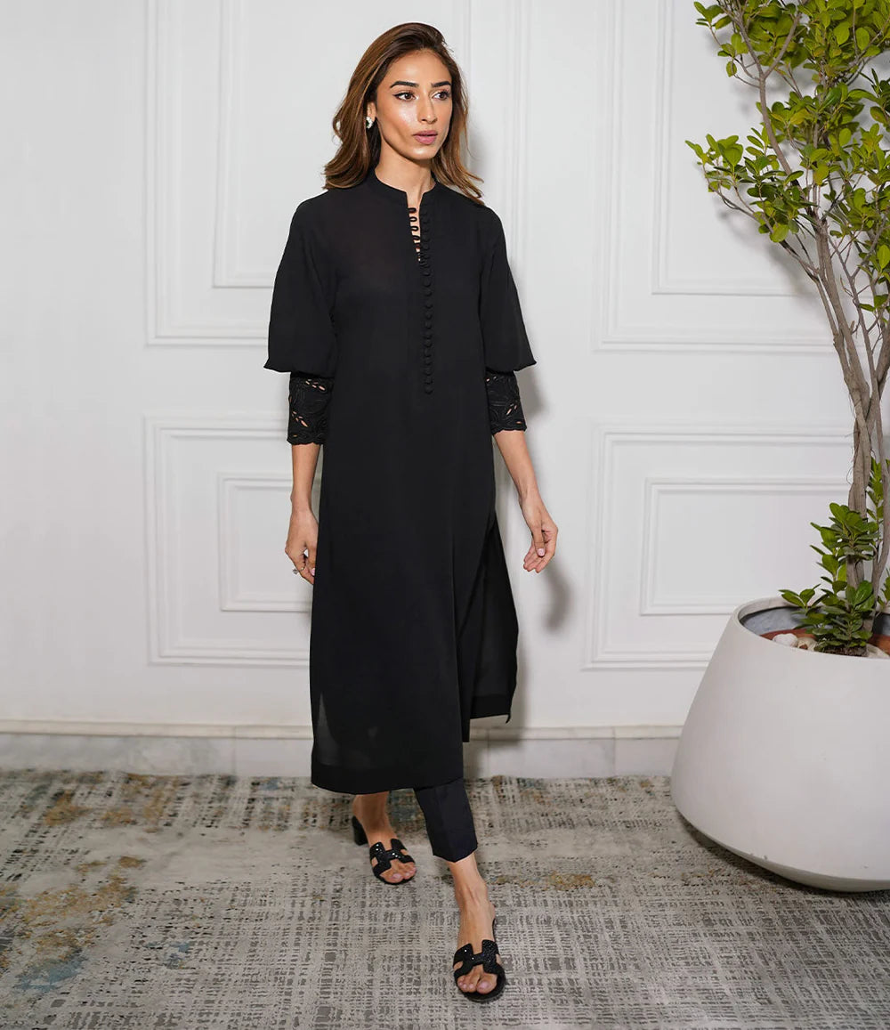 Design Details: Cut-Work Sleeves with Neckline Buttons