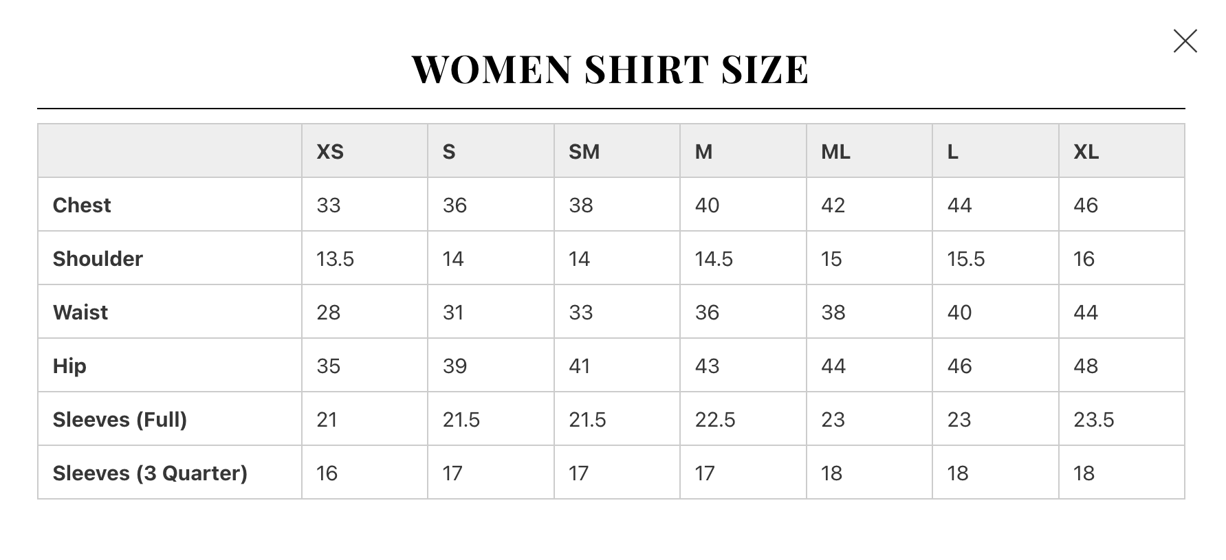 Size Chart : Please refer to the last image of the article for the size chart. Our size guide is provided in inches, and we have listed the measurements for one side. For example, the bust measurement for XS is 18+18, totaling 36 inches.