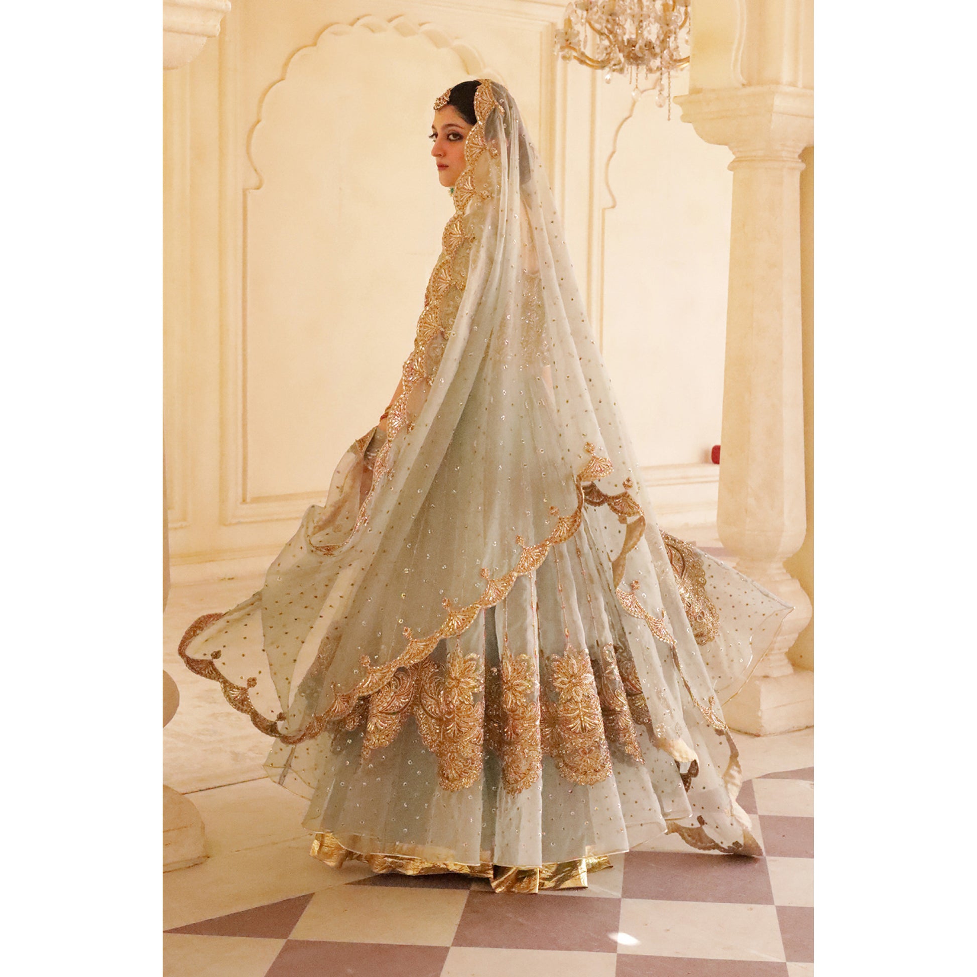 Dupatta: This elegant ensemble is perfectly complimented with the same color organza dupatta featuring intricate work ok baithki, sequins, pearls and floral applique.