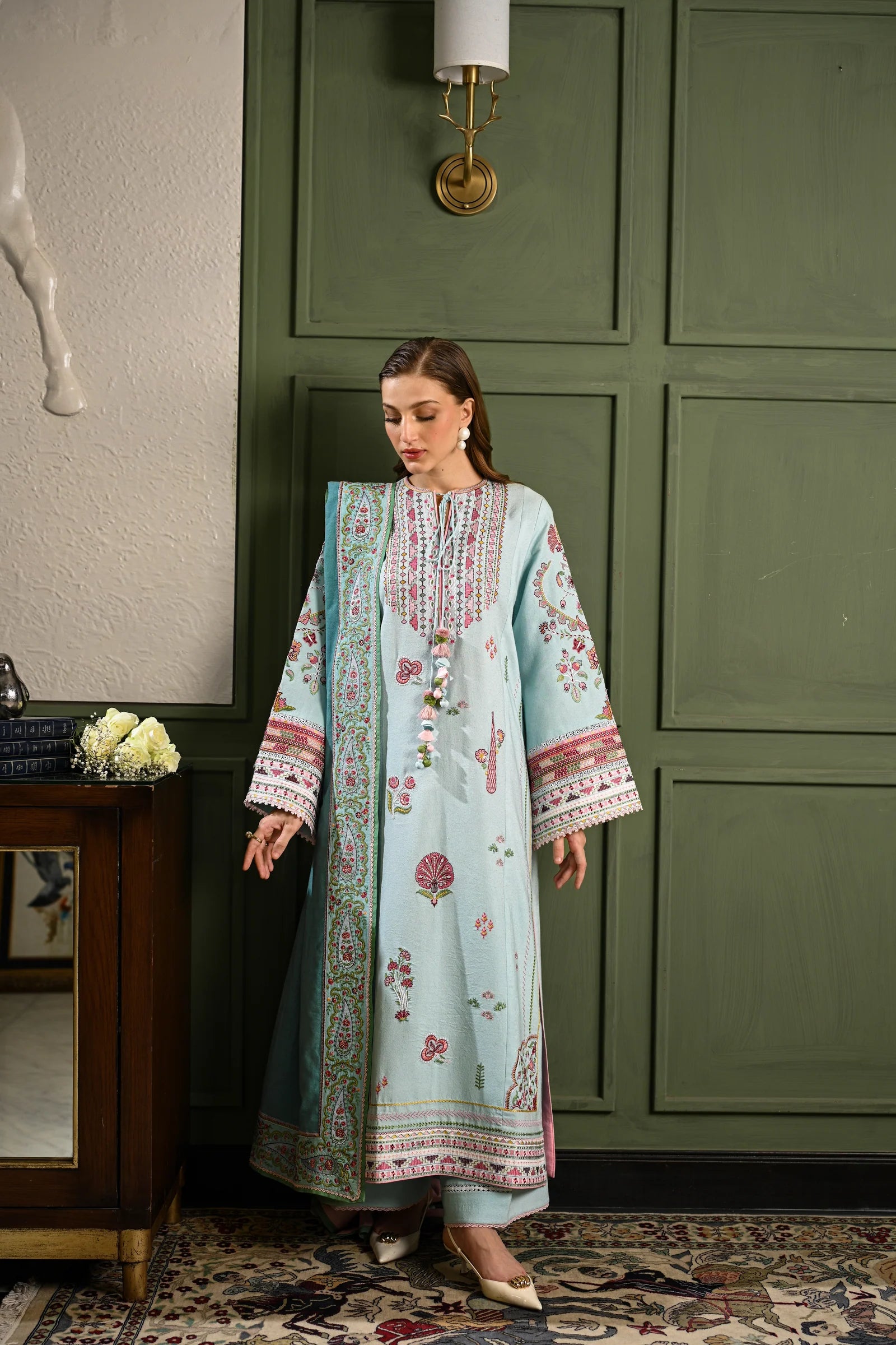 ICE BLUE LUXURY EMBROIDERED KARANDI SET (NEL-25634) | ZAIB