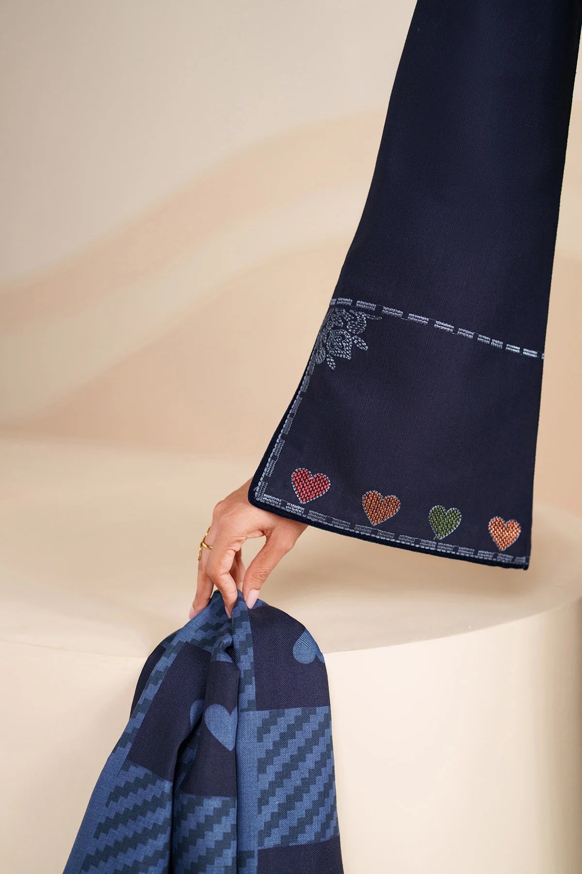 This refined winter ensemble features an embroidered khaddar front and sleeves that add depth and elegance to the cozy fabric. The dyed khaddar back and bottom offer comfort with a classic finish. Paired with a digital printed pashmina shawl, it brings a touch of warmth and sophistication to your seasonal wardrobe.