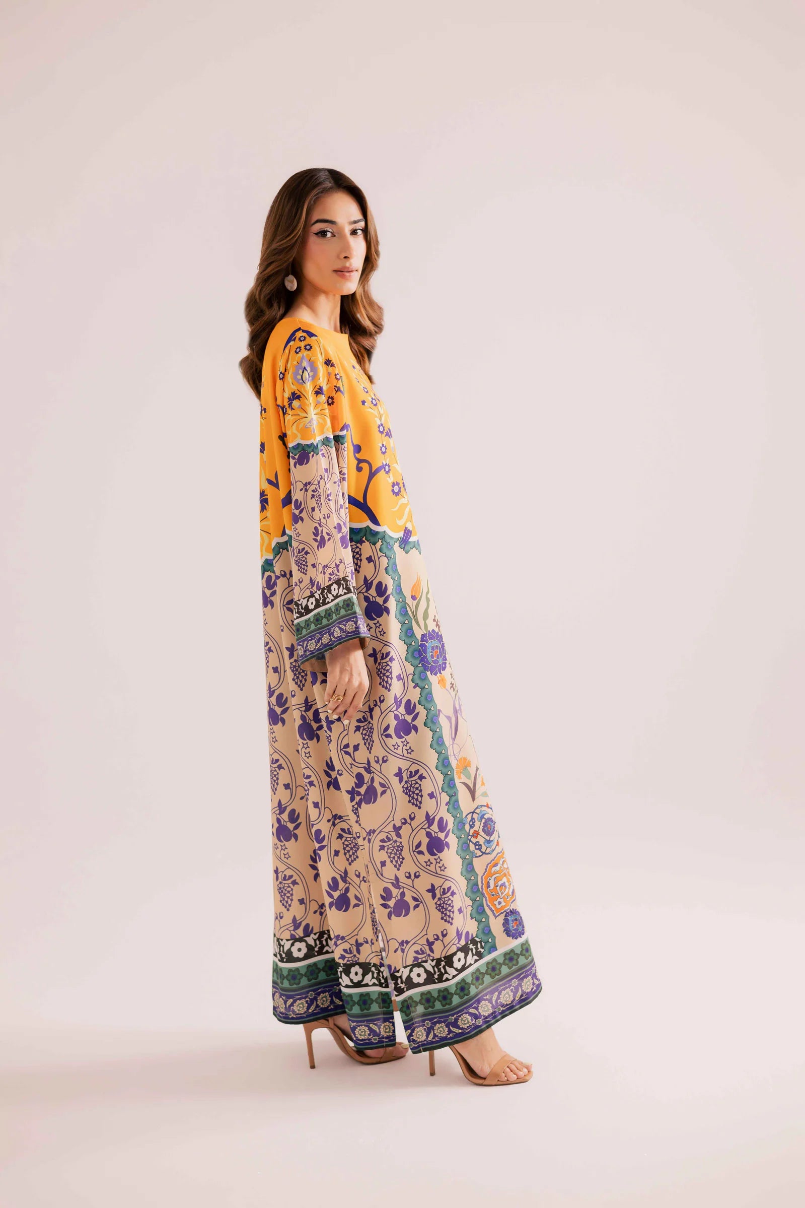 1PC Stitched Sublimation Printed Kaftan