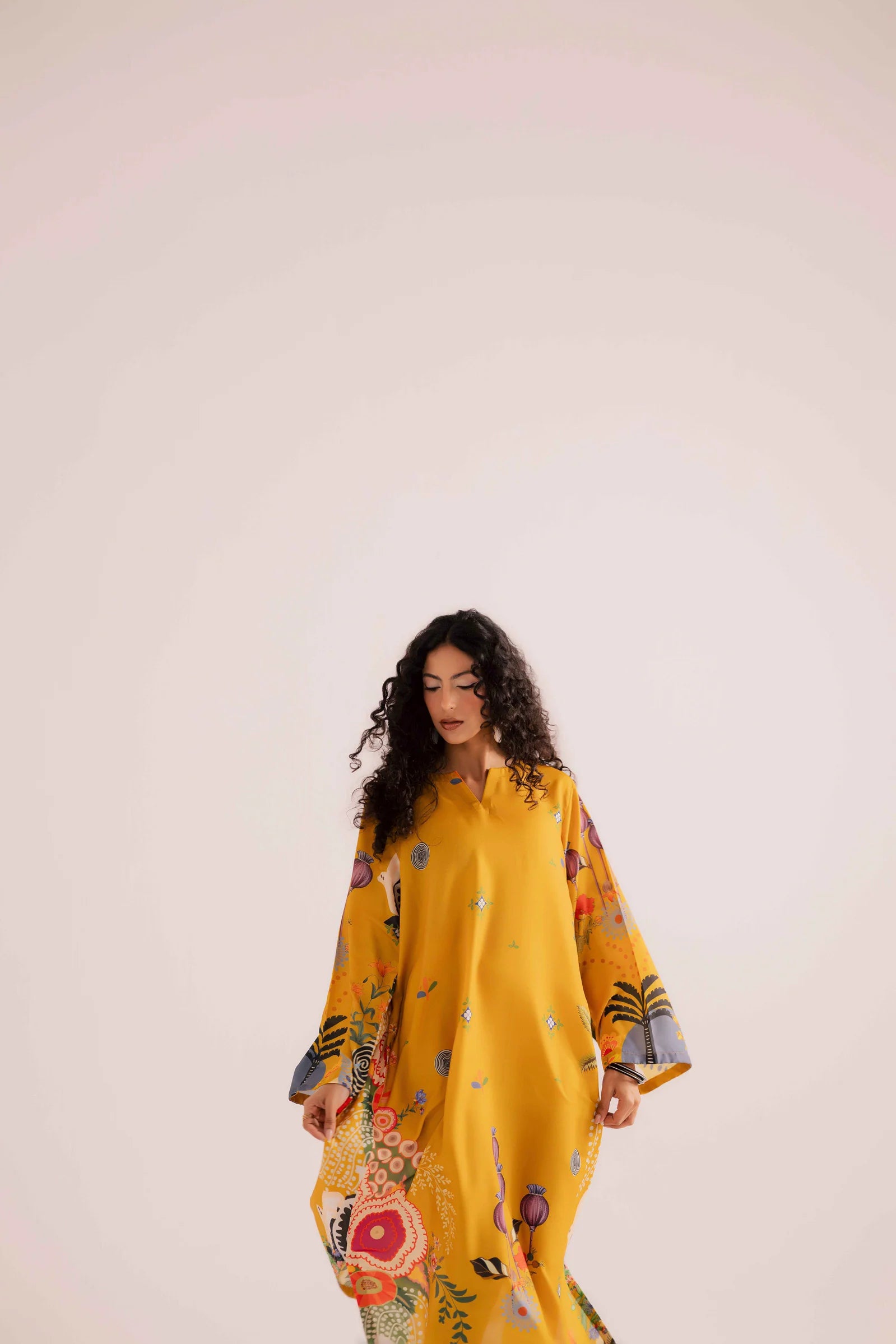 1PC Stitched Sublimation Printed Kaftan