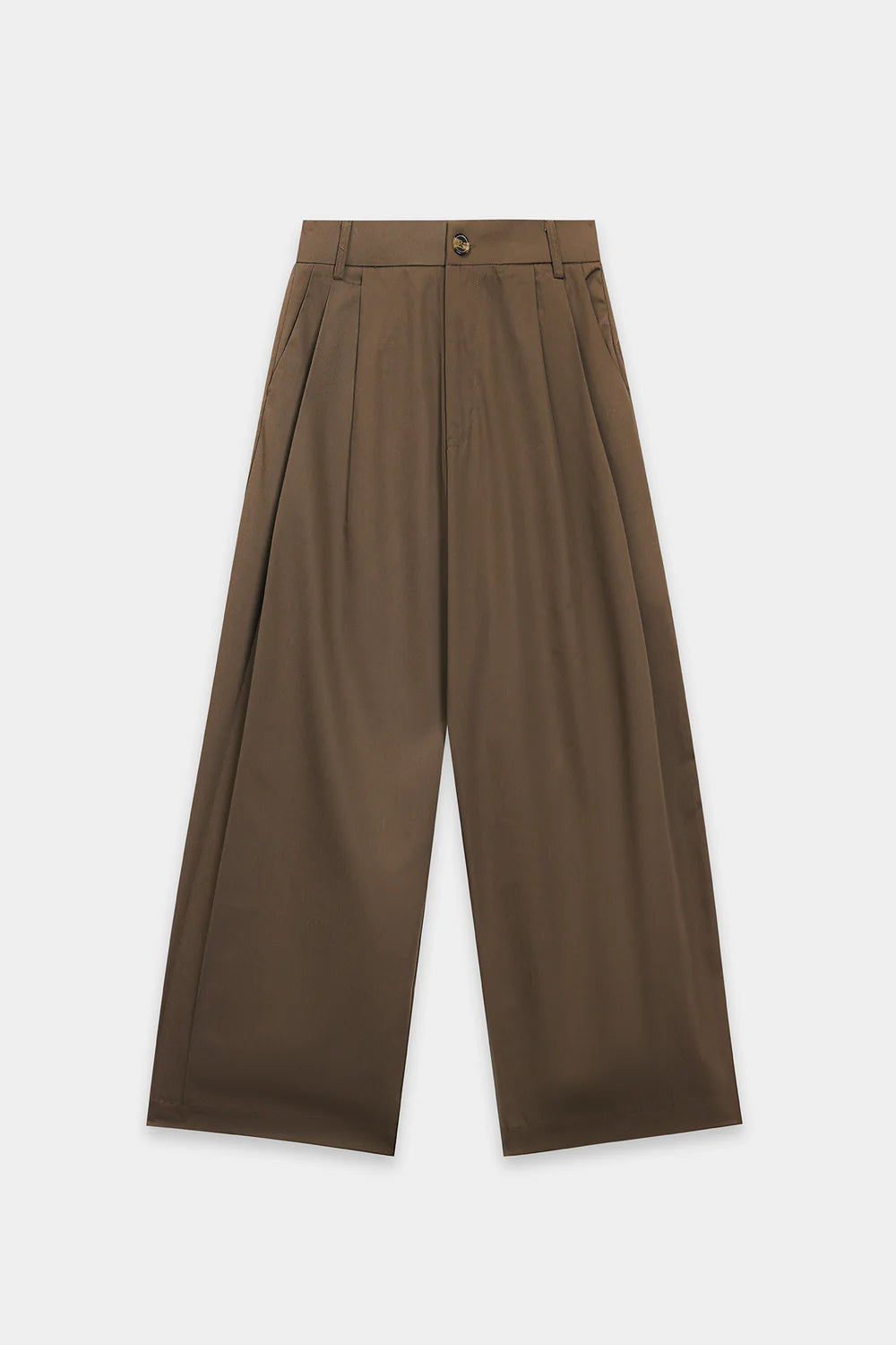 Experience understated luxury with these high-waisted wide-leg trousers, designed for effortless comfort and timeless appeal. These pants feature a generous, flowing silhouette that drapes beautifully. The rich earthy tone—a sophisticated blend of olive, taupe, and khaki offers exceptional versatility, pairing seamlessly with embroidered tops, simple tunics, or contemporary blouses. The gathered waistband creates a refined, intentional aesthetic that flatters diverse body types while allowing freedom of movement. Perfect for those who prioritize both style and comfort.