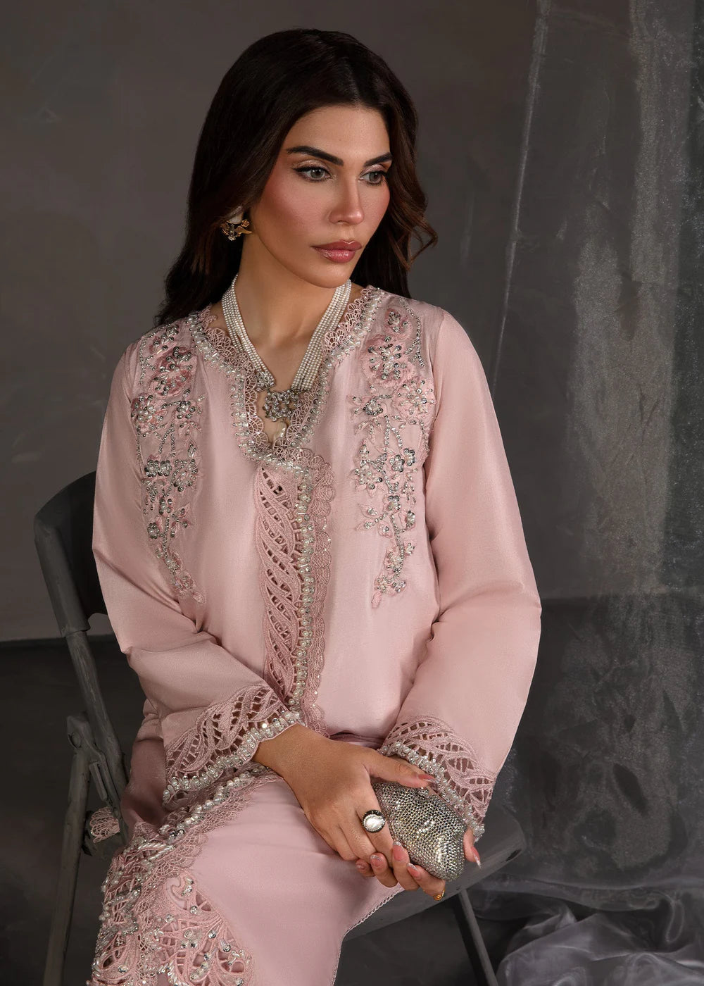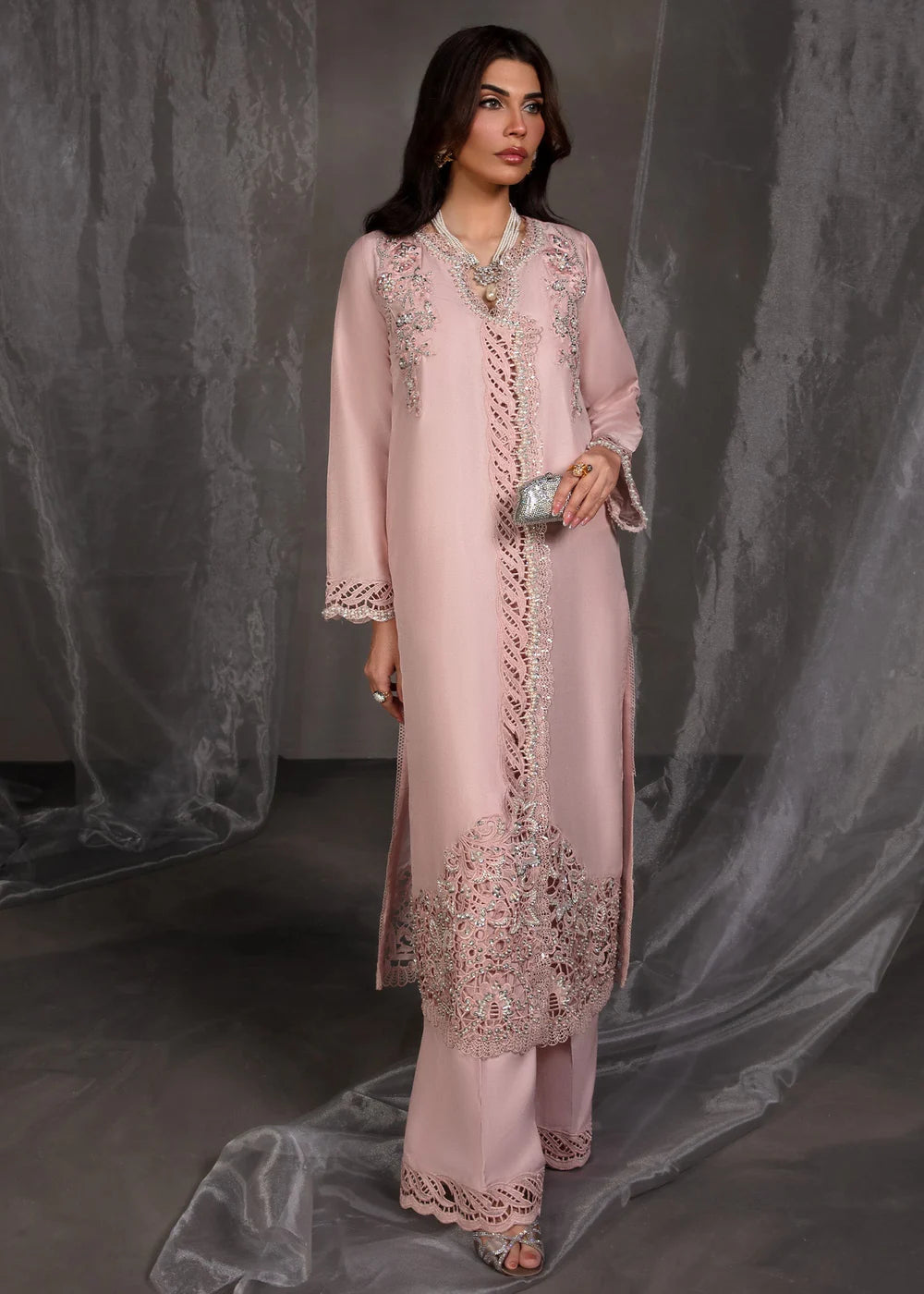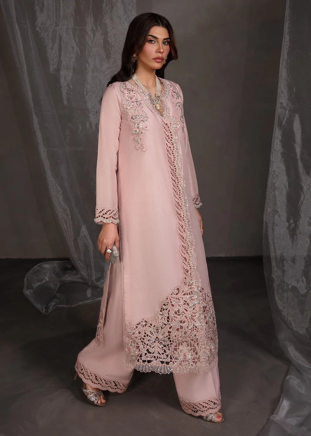 Additional Description: Crafted with delicate finesse, radiates unparalleled elegance, this outfit is a masterpiece in itself. Every detail reflects a commitment to excellence, while the soft tones merge effortlessly with exquisite embroidery, offering a harmonious balance of modern grace and classic refinement.