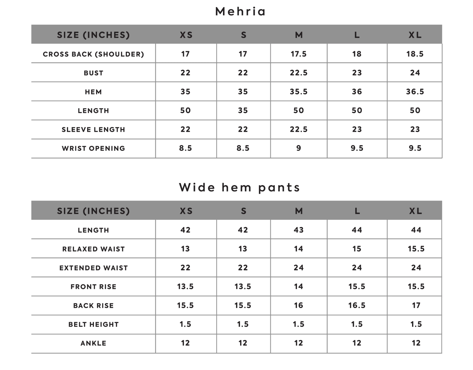 Mehria is a classic loose-fit silk Karandi ensemble, designed to celebrate timeless elegance with artisanal detailing. The kurta is adorned with all-over paisley embroidery, showcasing meticulous craftsmanship and a textured, heritage-inspired aesthetic. Paired with wide-hem silk Karandi pants, the silhouette flows gracefully while offering comfort and sophistication.