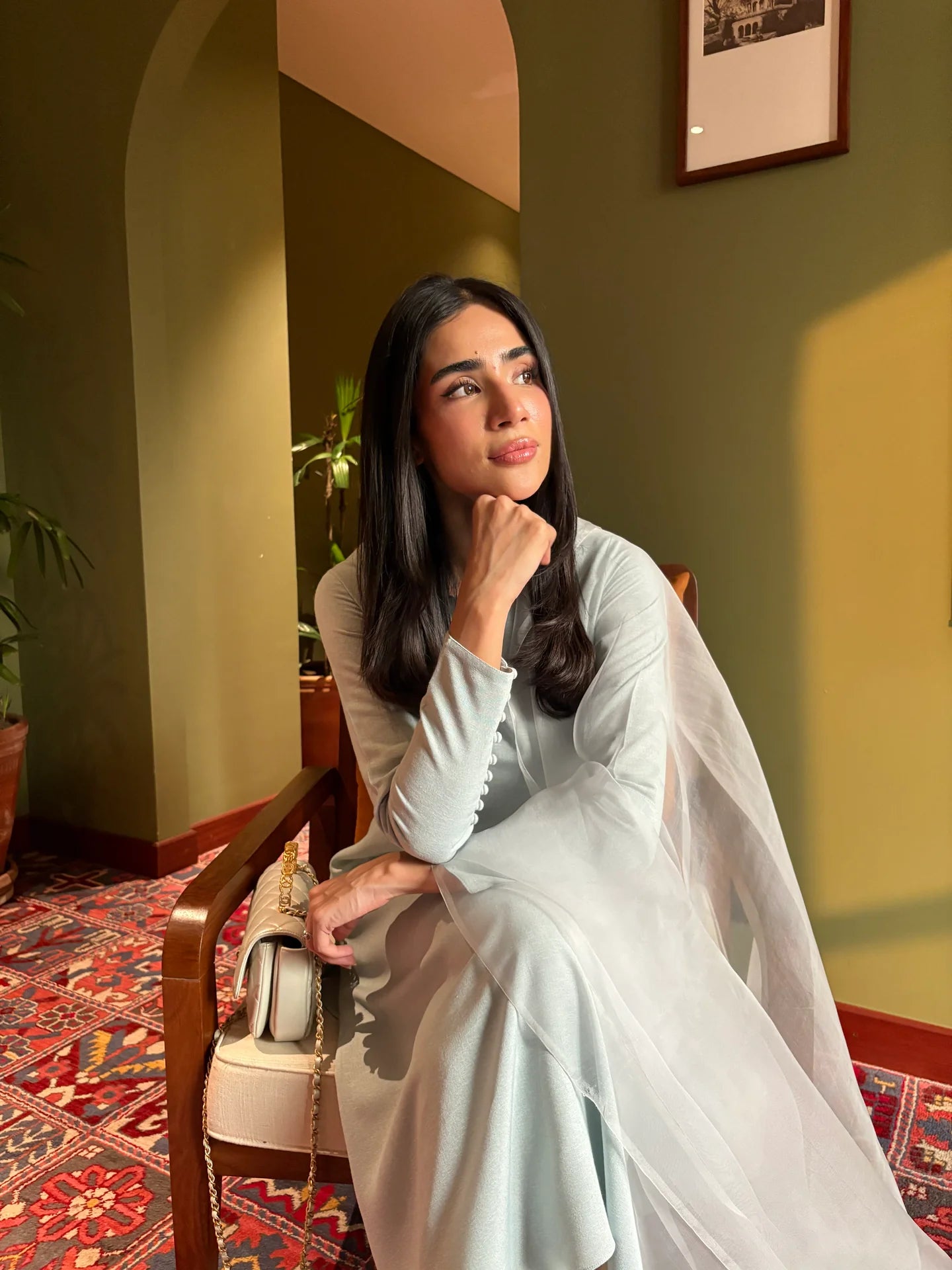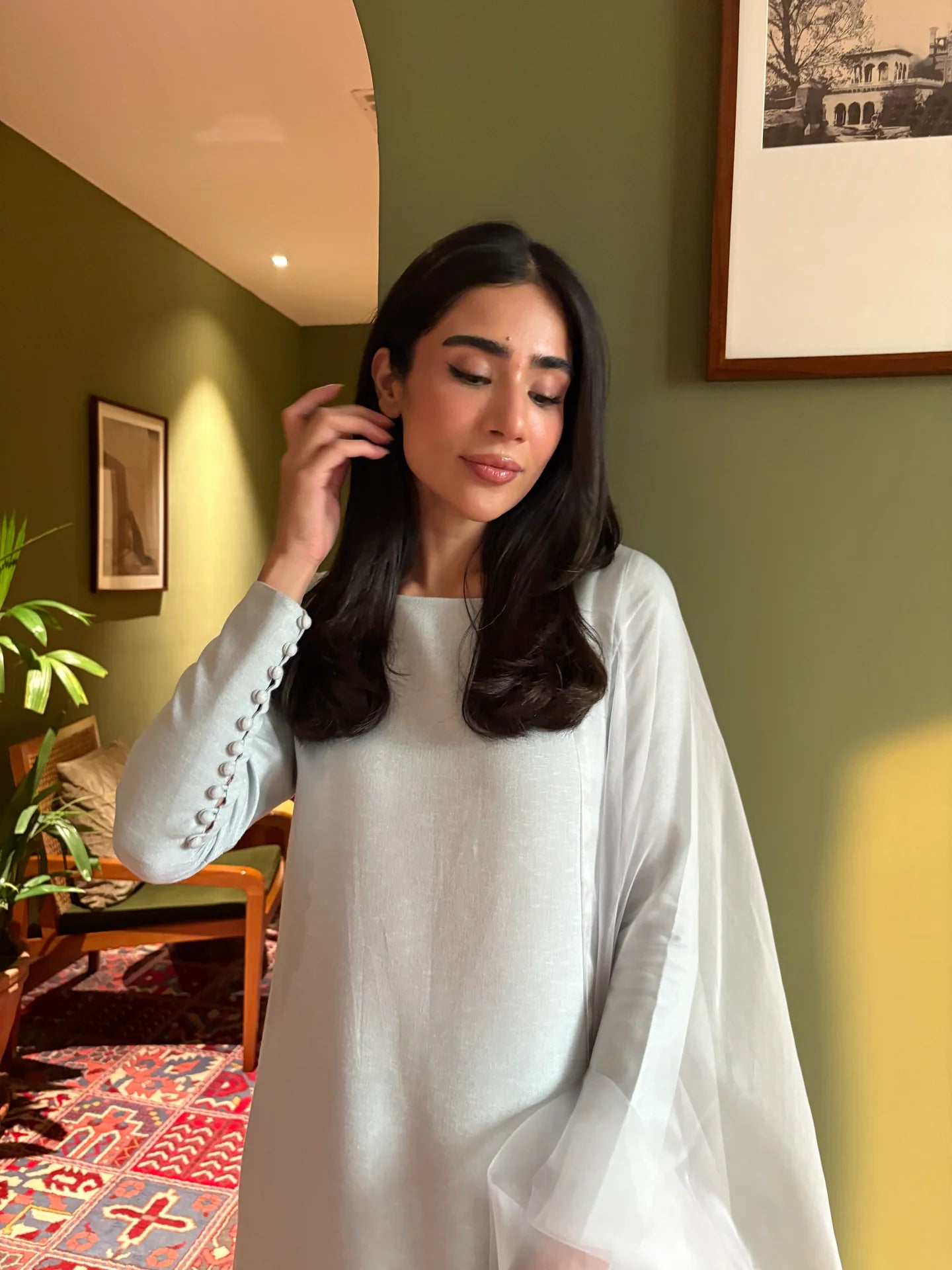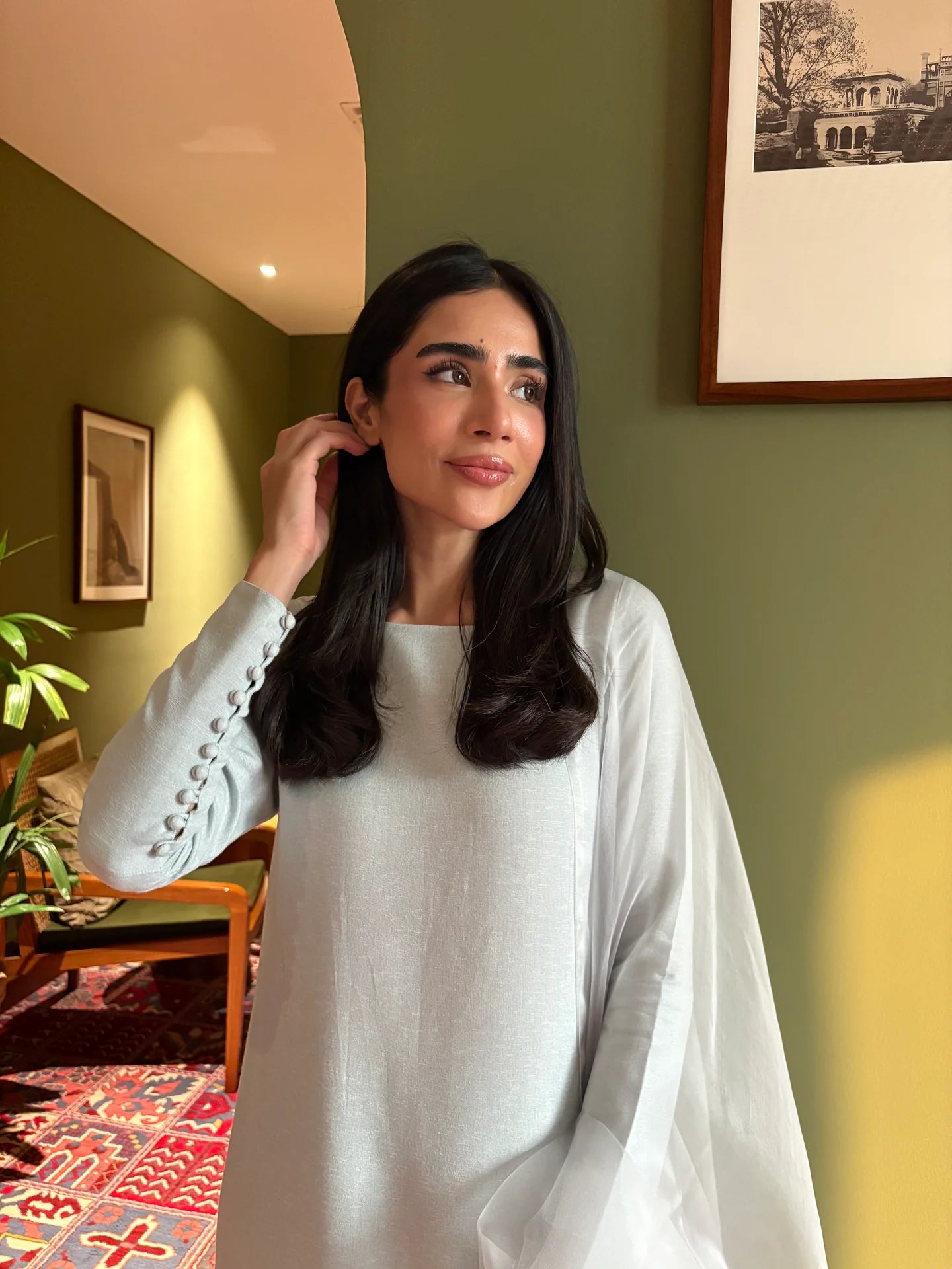 Muted Grey-Blue Buttoned Set | Sak Atelier