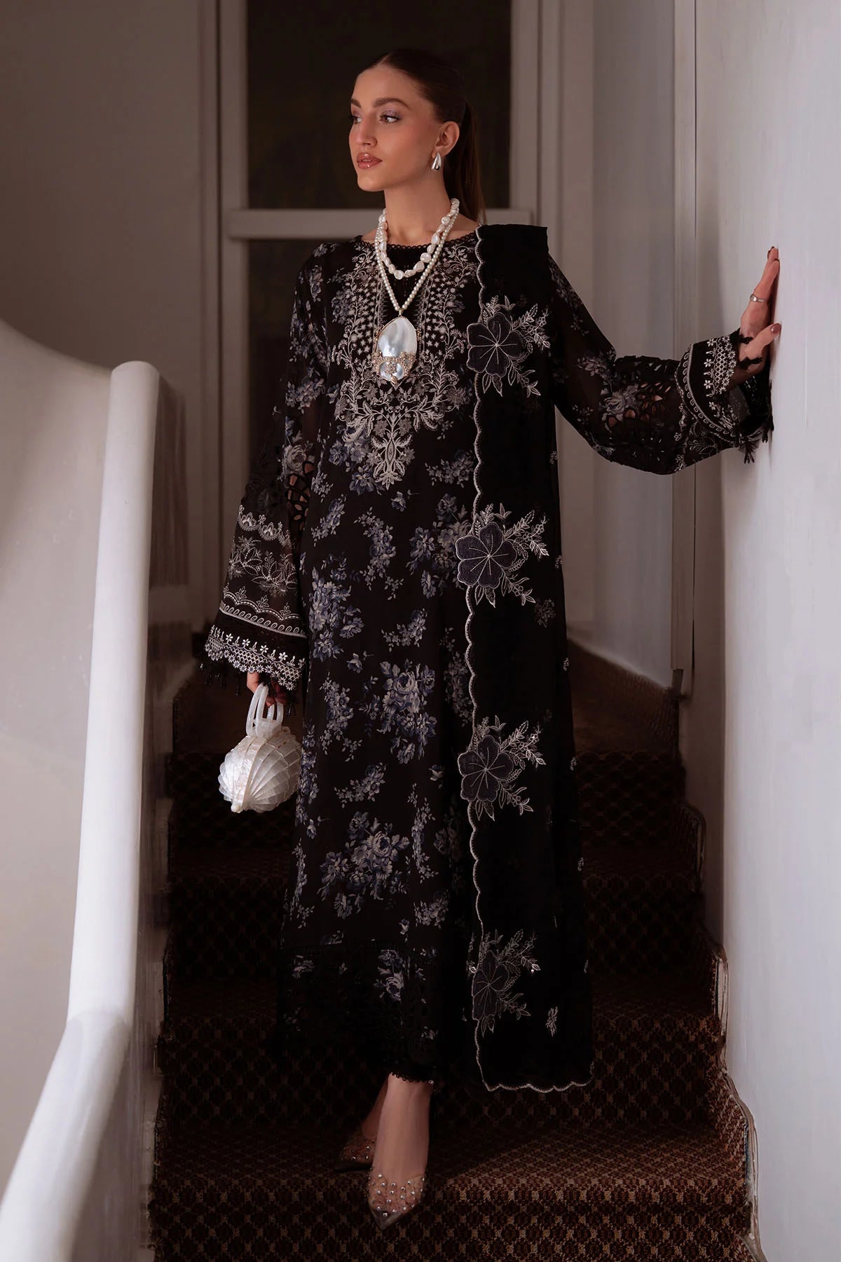 EMBROIDERED AND PRINTED SWISS LAWN SHIRT