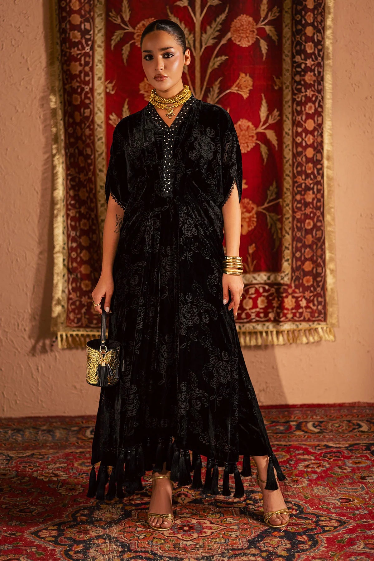 - VELVET PALACHI SHIRT WITH HAND EMBELLISHED NECKLINE