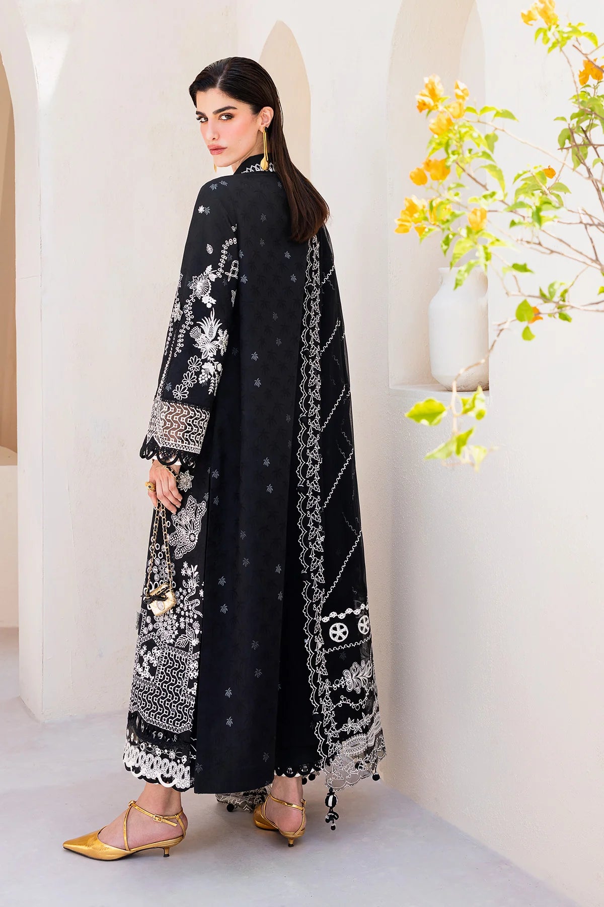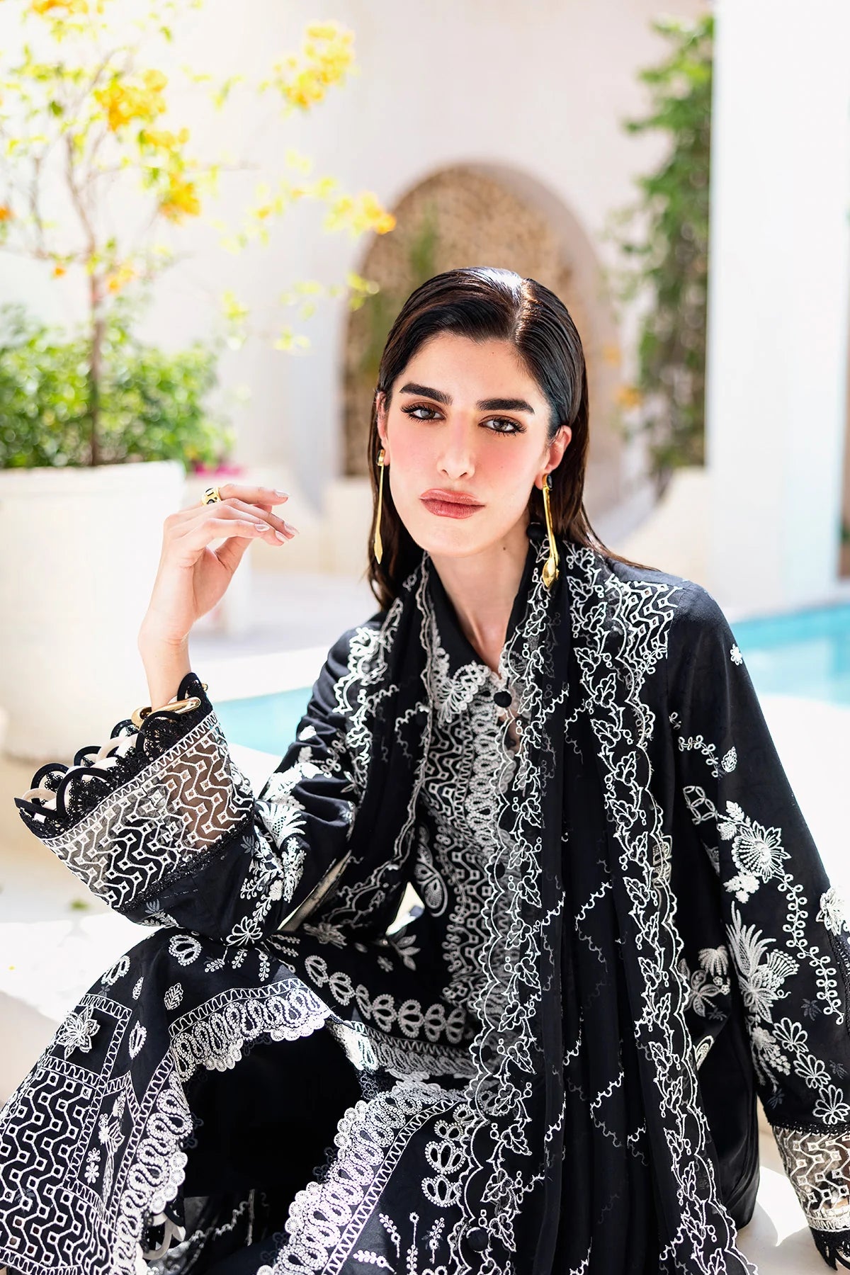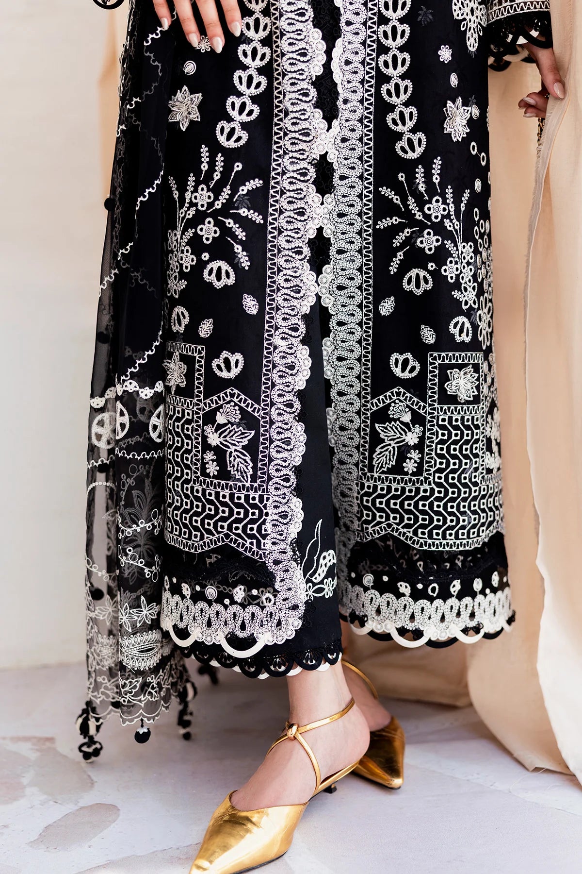 Eclipse features a lawn shirt complemented by a chiffon dupatta and cotton trousers, balancing simplicity with quiet statement.