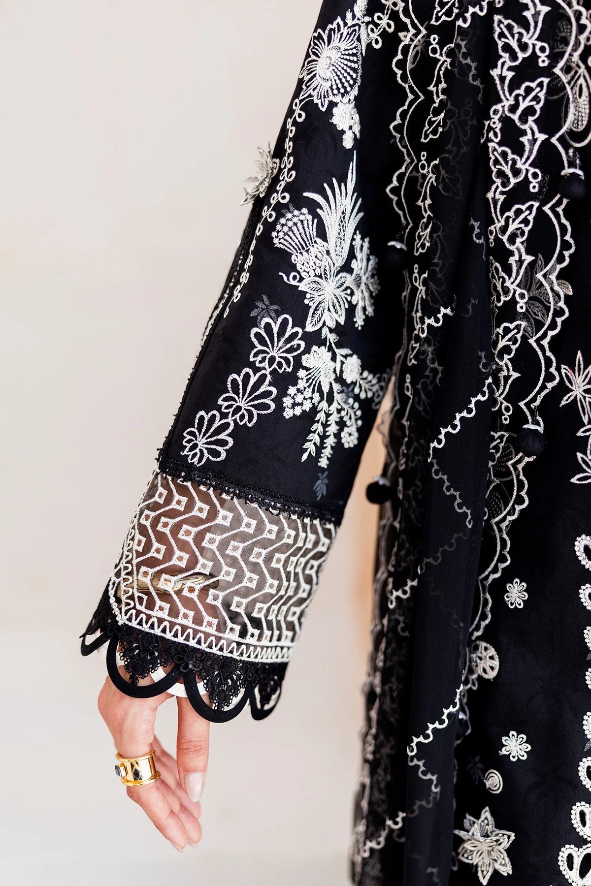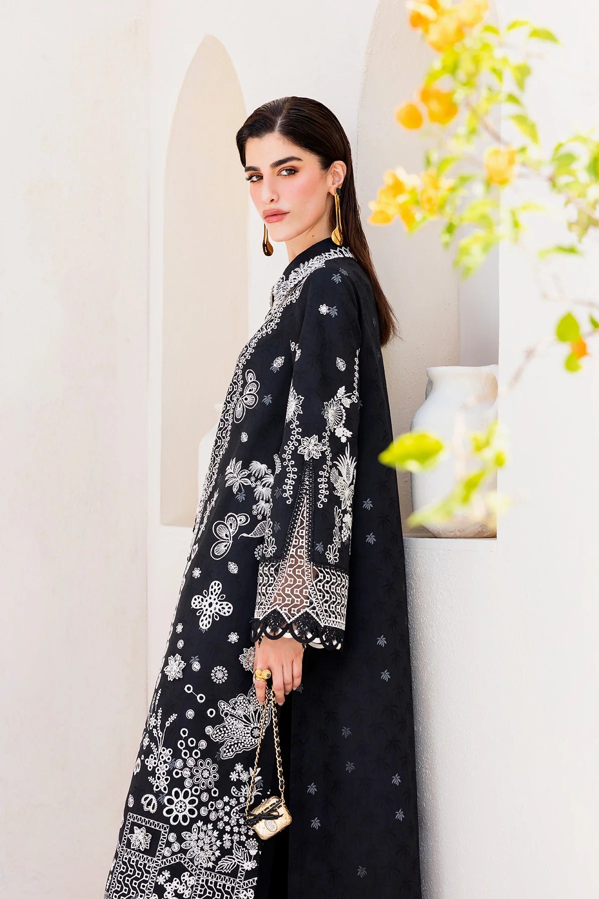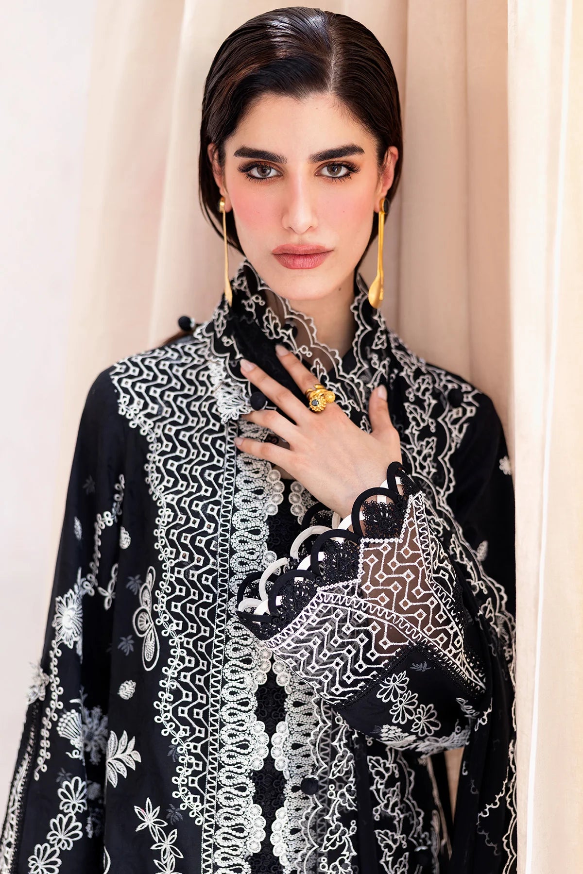 Eclipse features a lawn shirt complemented by a chiffon dupatta and cotton trousers, balancing simplicity with quiet statement.