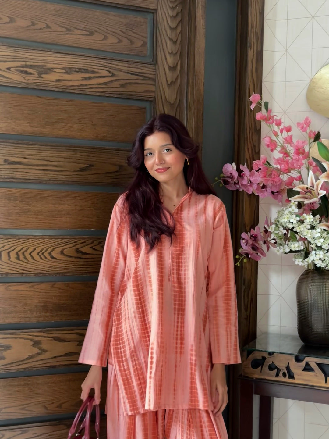 A breathable shalwar and kurta set made from hand-woven cotton. Featuring black stripes on burgundy base