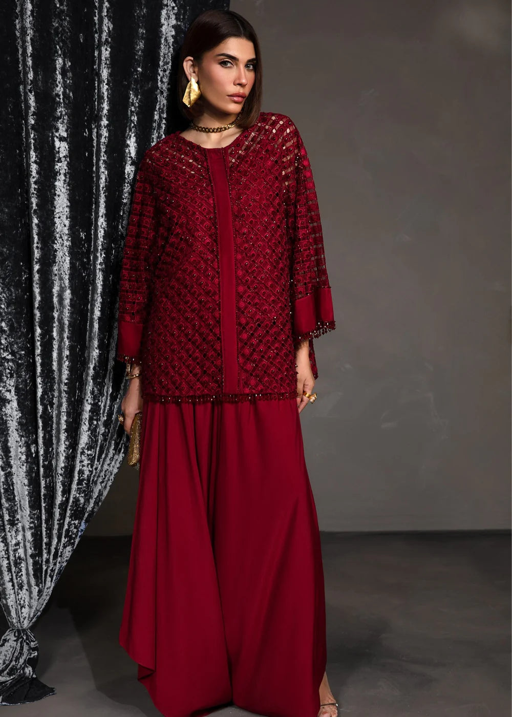 Additional Description: Sequins and beadwork embellish the top, featuring a Swarovski crystal placket and crystal hangings for a finishing touch.