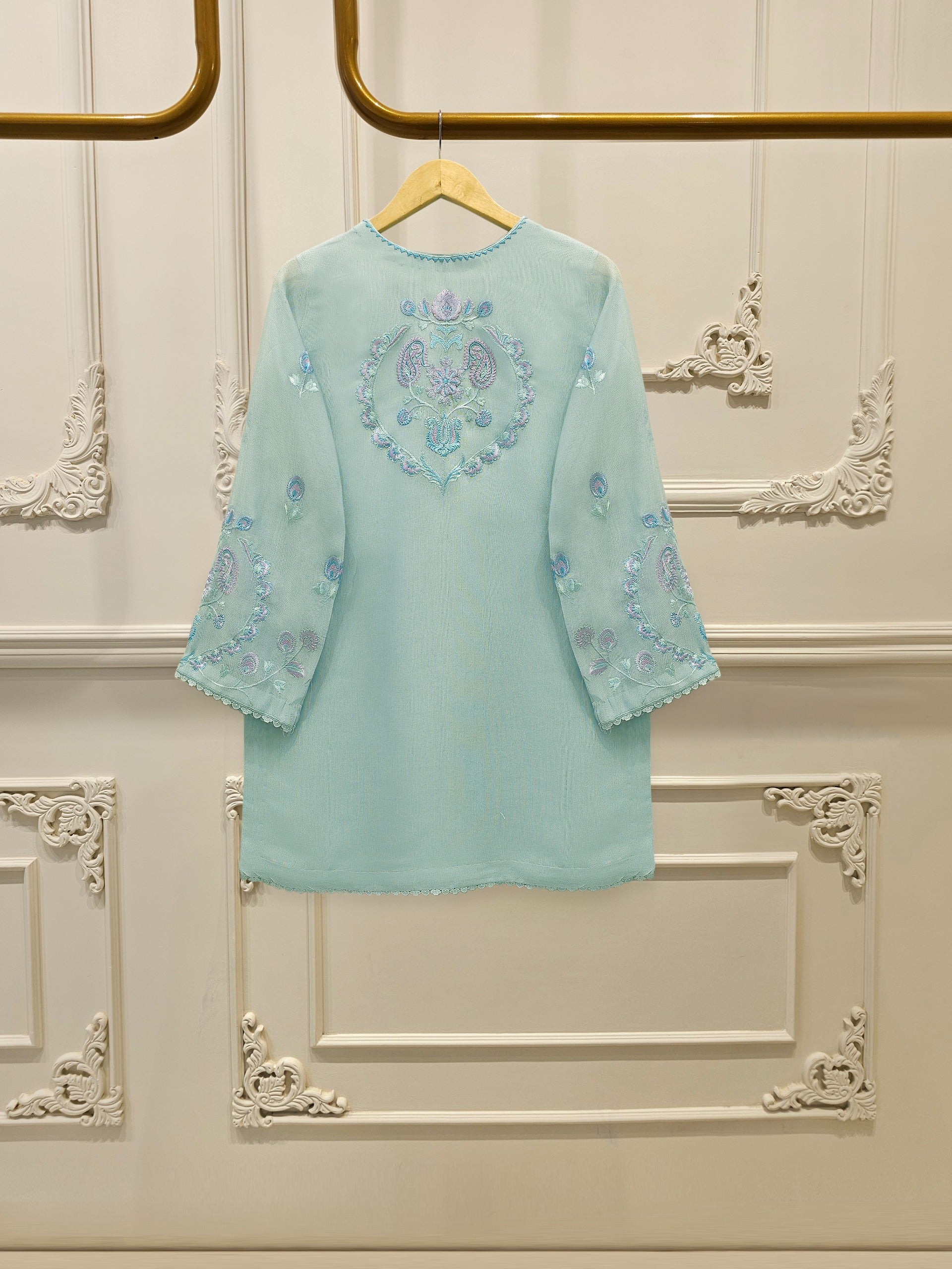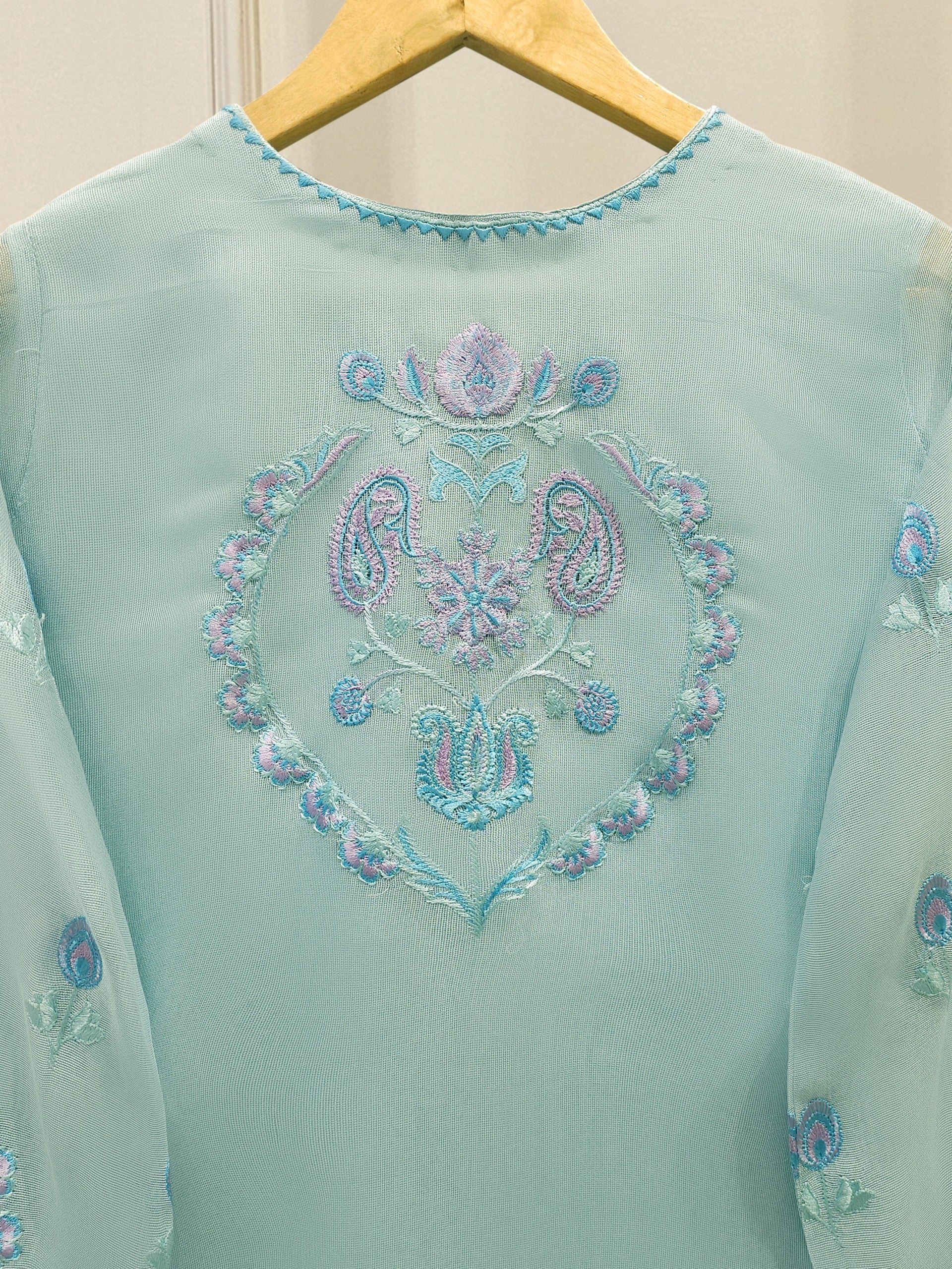 Introducing our elegant embroidered cotton net shirt with pants a perfect choice for those who appreciate intricate detailing and graceful style. Crafted from high-quality cotton net fabric, this shirt offers a lightweight and luxurious feel, allowing you to feel comfortable and chic throughout the day. The set comes with a matching pant which enhances the overall look and adds a touch of finesse to your outfit.