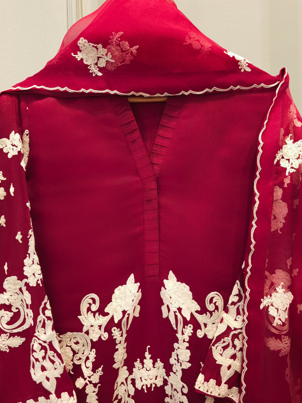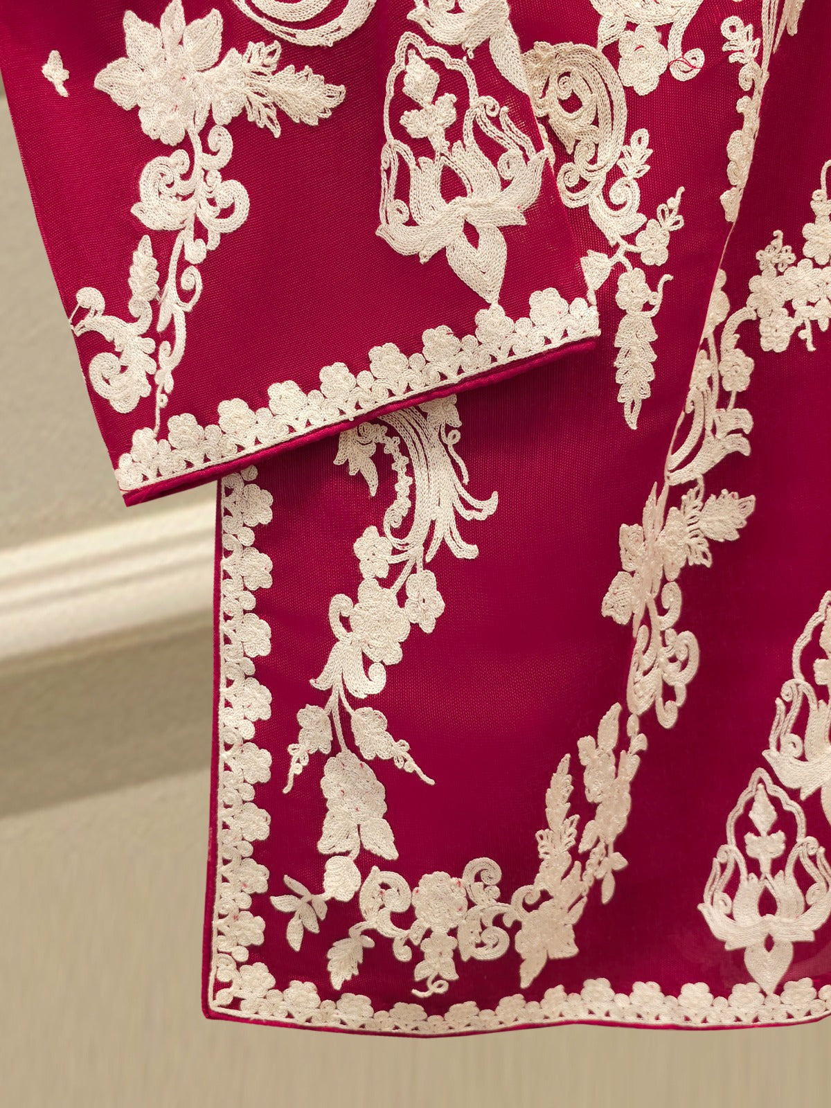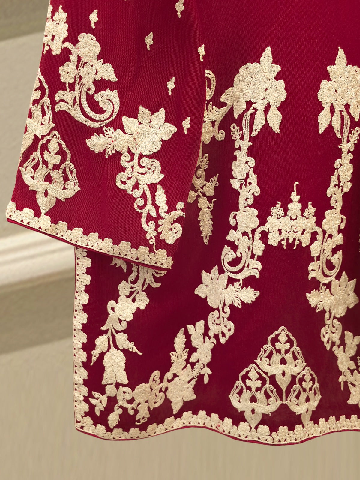 Introducing our elegant embroidered cotton net shirt with pants a perfect choice for those who appreciate intricate detailing and graceful style. Crafted from high-quality cotton net fabric, this shirt offers a lightweight and luxurious feel, allowing you to feel comfortable and chic throughout the day. The set comes with a matching pant which enhances the overall look and adds a touch of finesse to your outfit.