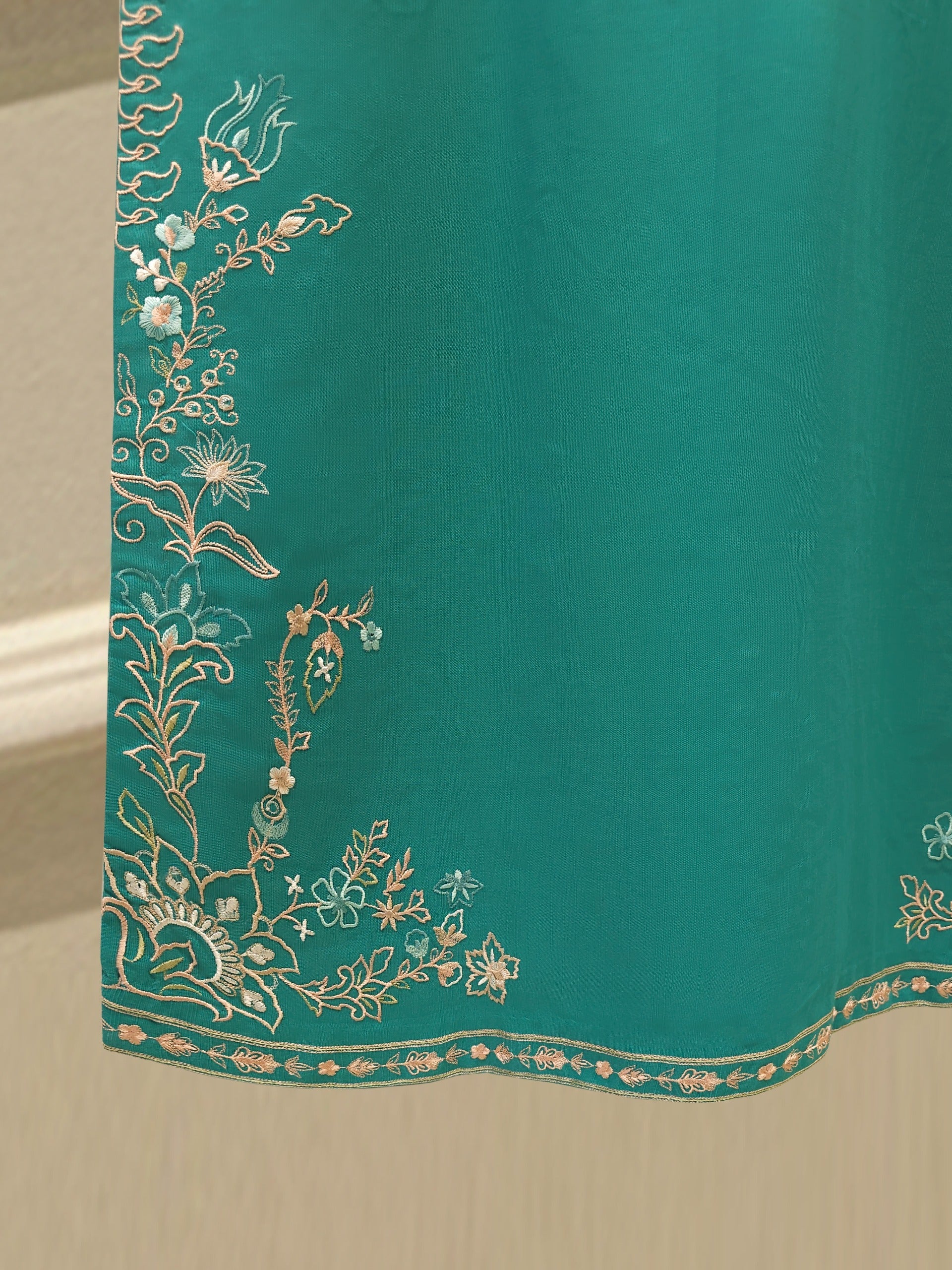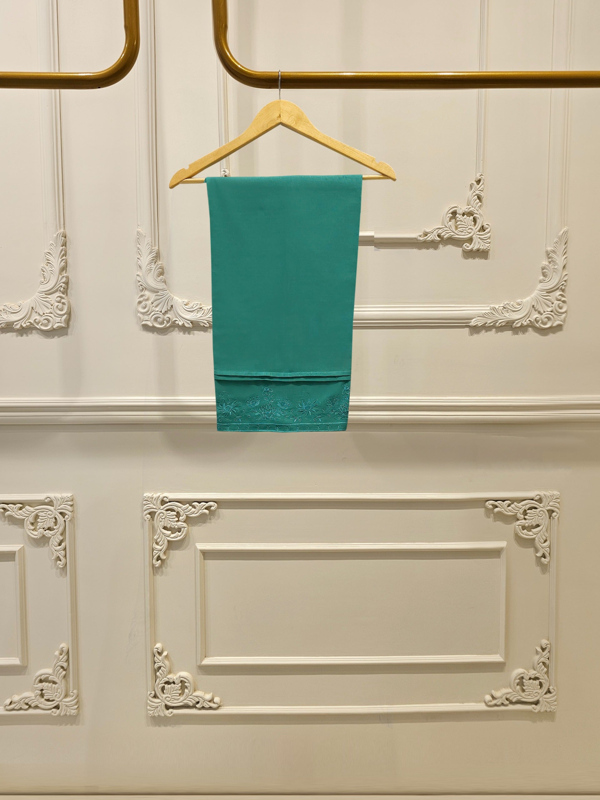 Green embroidered khaddar suit features a rich, traditional design on a warm, textured fabric ideal for cooler weather. The intricate embroidery add a touch of elegance, while the soft yet durable khaddar material ensures comfort and style for everyday wear or casual gatherings. Perfect for autumn and winter seasons.