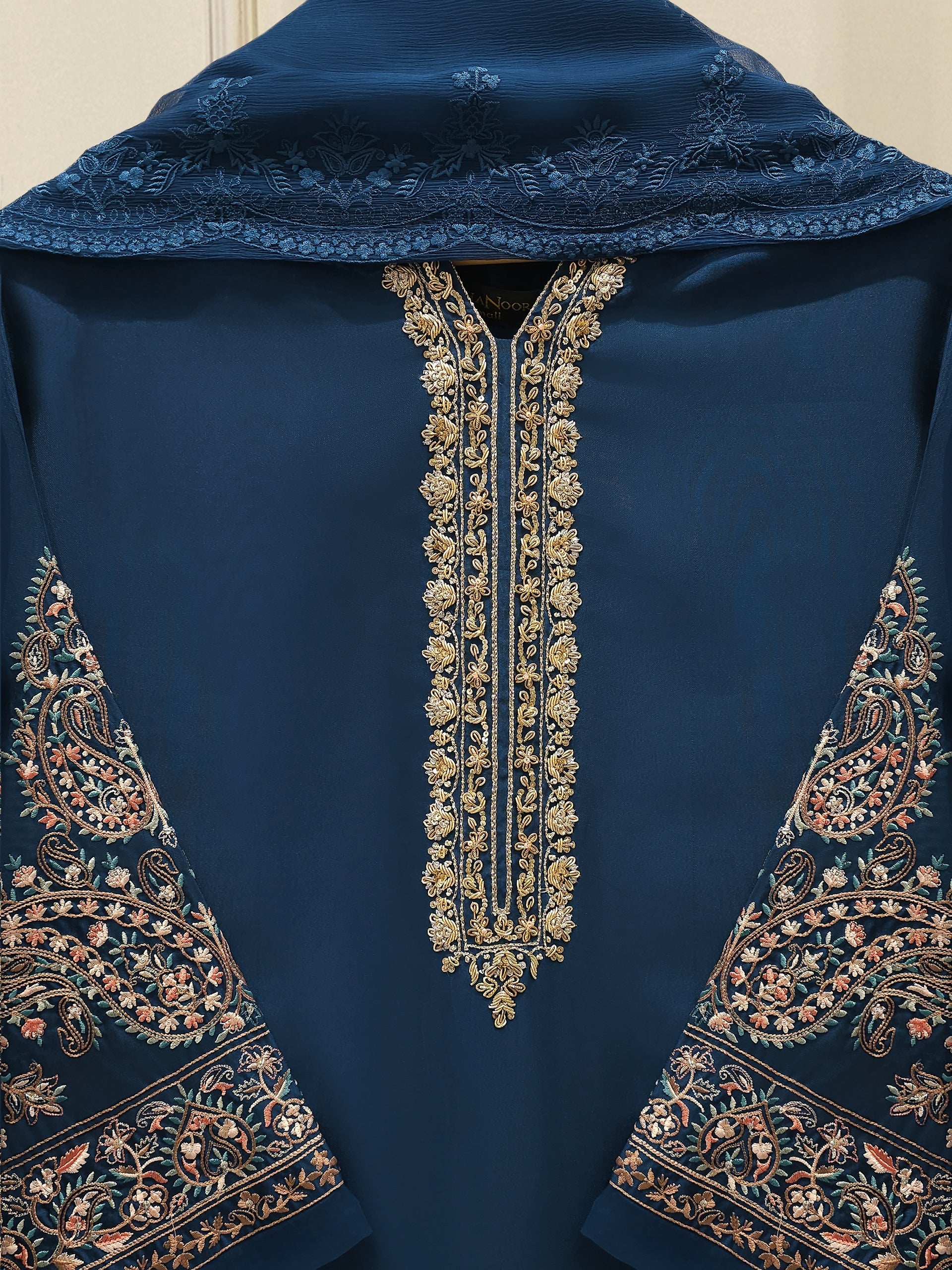 3 Piece- Pure Embroidered Sheesha Silk Suit S112899