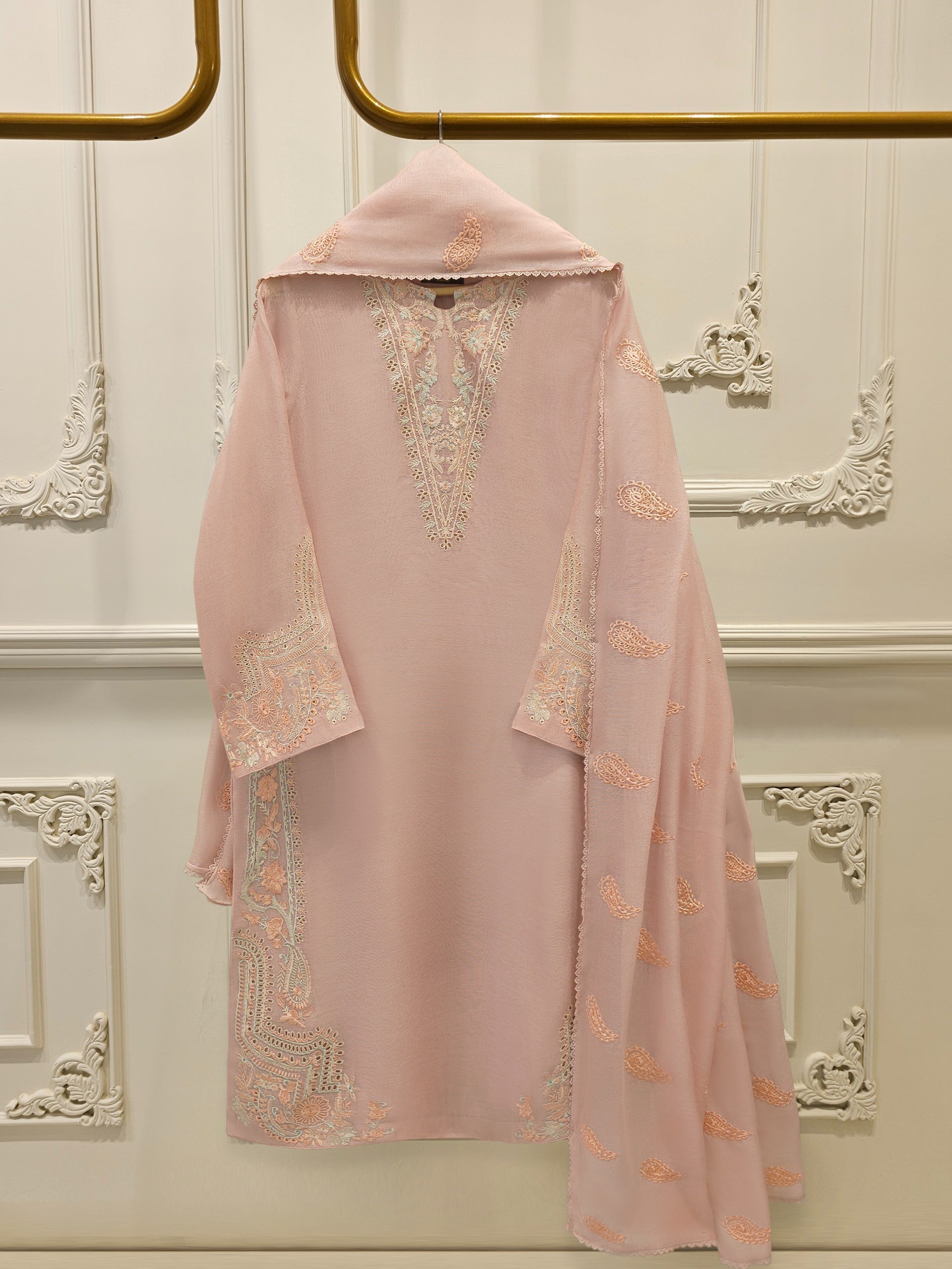 S112902 | Pure Embroidered Cotton Net Suit | Aghanoor Bridal