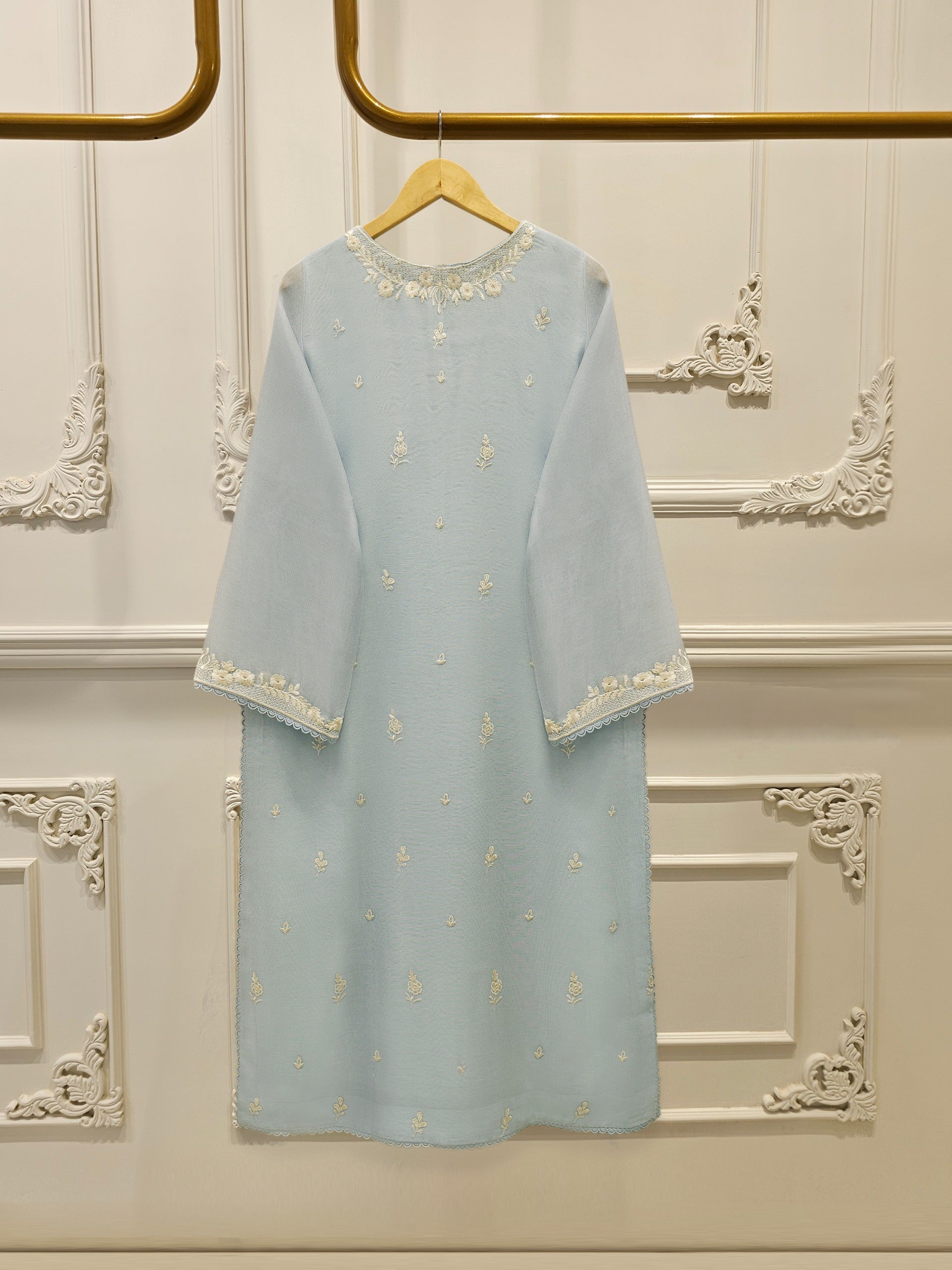 S112905 | Pure Embroidered Cotton Net Shirt | Aghanoor Bridal