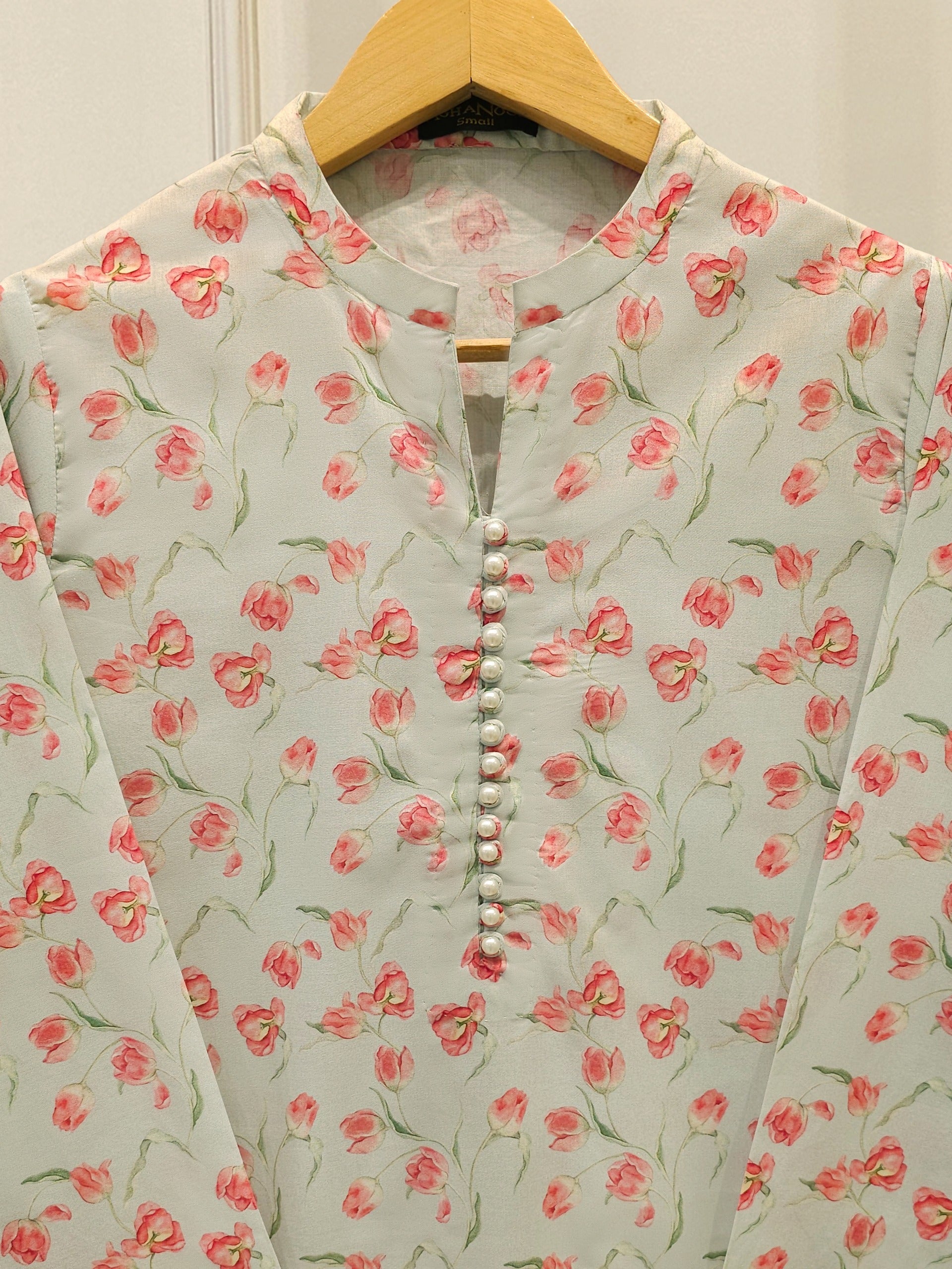 A cambric digital printed suit is crafted from soft, lightweight cambric fabric, offering a smooth feel and breathable comfort. Featuring vibrant digital prints with fine detailing, it delivers rich colors and a polished look, making it perfect for everyday wear as well as casual outings.