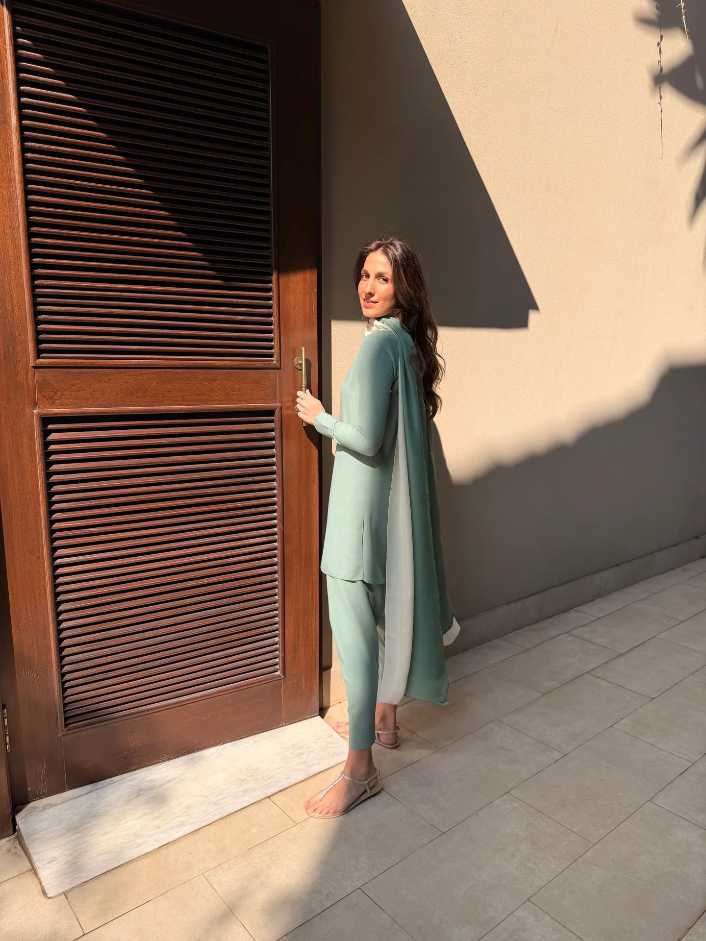 Comes as a two piece set (shirt and skinny shalwar with concealed zip)