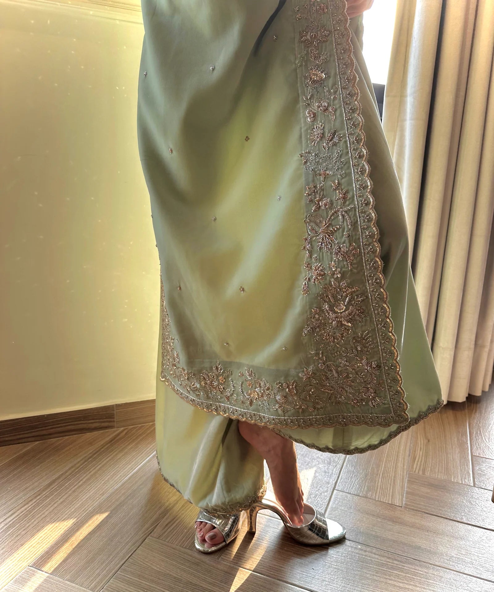Make a statement with these glamorous croc-textured silver heels that redefine sophistication. Crafted with a sleek metallic finish, the open-toe design and slender heel add a modern edge while maintaining timeless elegance. Perfect for evening events or festive occasions, these heels elevate any outfit with their radiant shine and refined texture. Pair them with denim for a chic contrast or with formal wear for a dazzling finish.