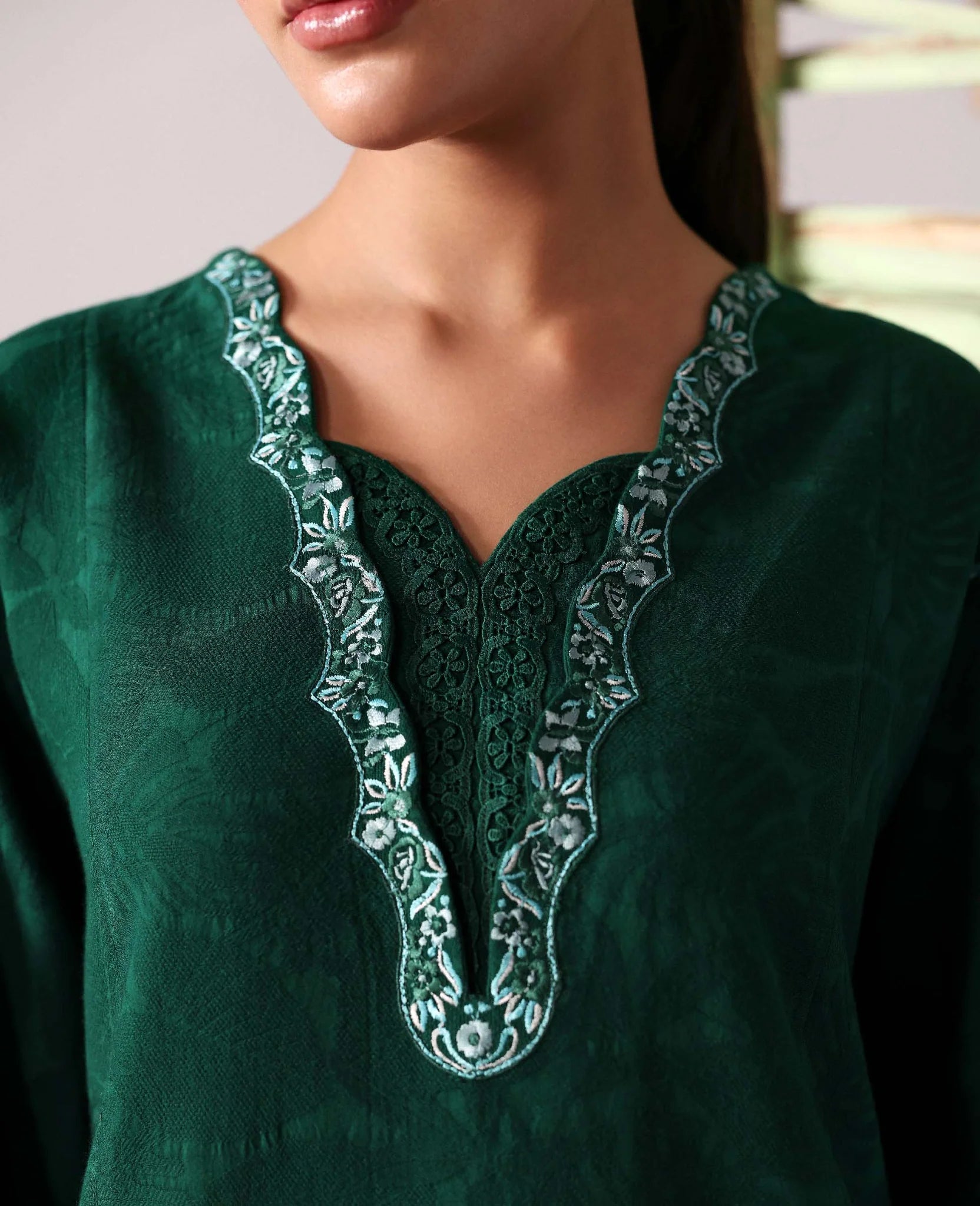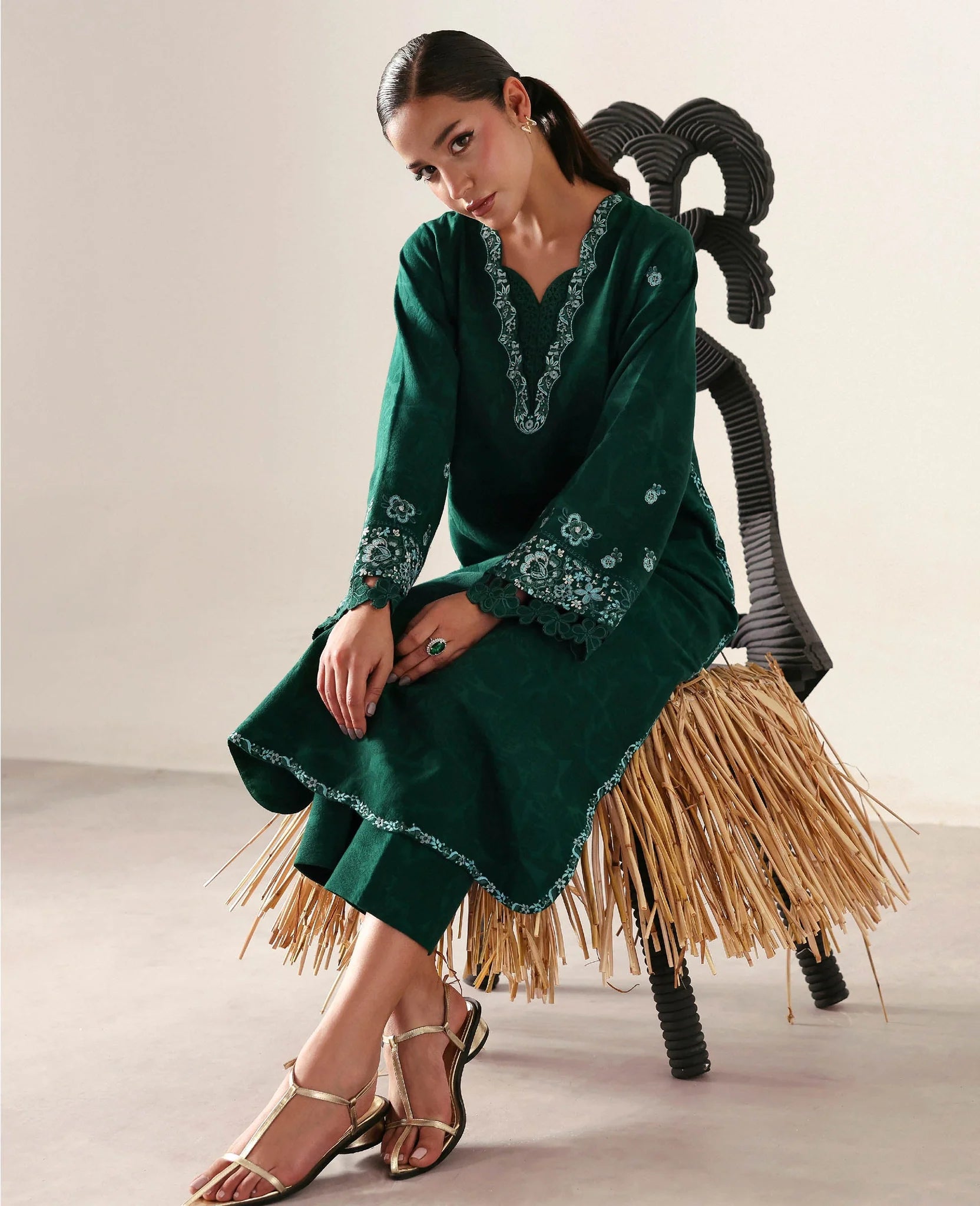 This printed shirt, featuring delicate embroidery along the sleeves, rounded hem, and neckline, is the perfect blend of elegance and subtle craftsmanship. The intricate details elevate the design, making it a standout piece for any occasion. Paired with matching trousers, this two-piece set offering both comfort and style.
