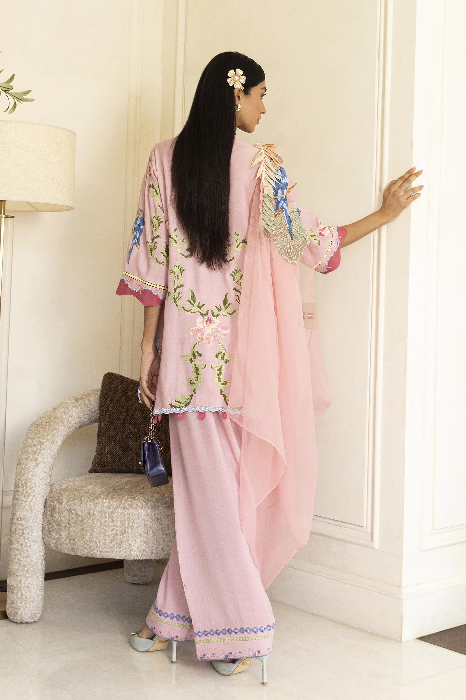 Description: Soft pink, pops of colour, and playful detailing " your go-to outfit for happy gatherings.