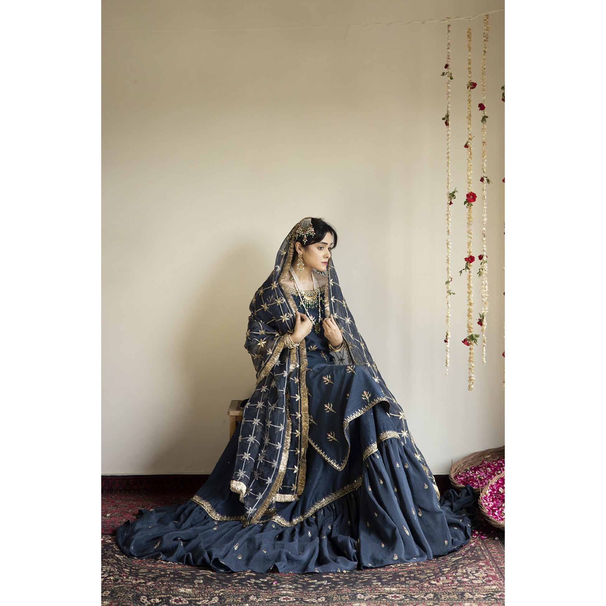 Material: Fused Bamber Silk. 2-Pc (Kameez & Lehnga)