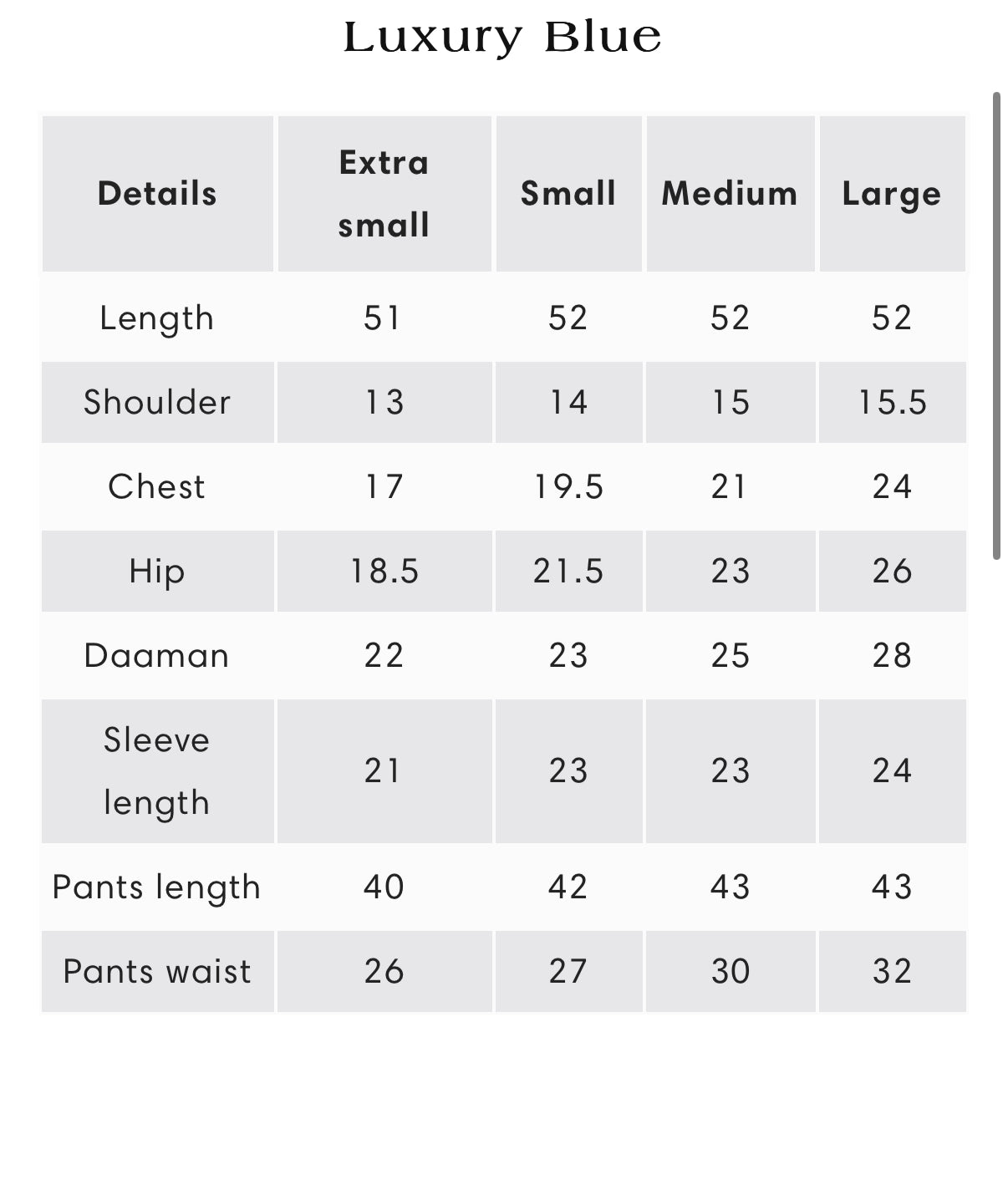 DISCLAIMER: We try our best to ensure that the colours viewed on the website and our instagram page are an exact representation of the actual colour of the outfit. However, due to a number of factors such as, the nature of fabric dyes, weather at the time of dying, lighting, digital photography, colour settings and capabilities of monitors, they may differ in real life.
