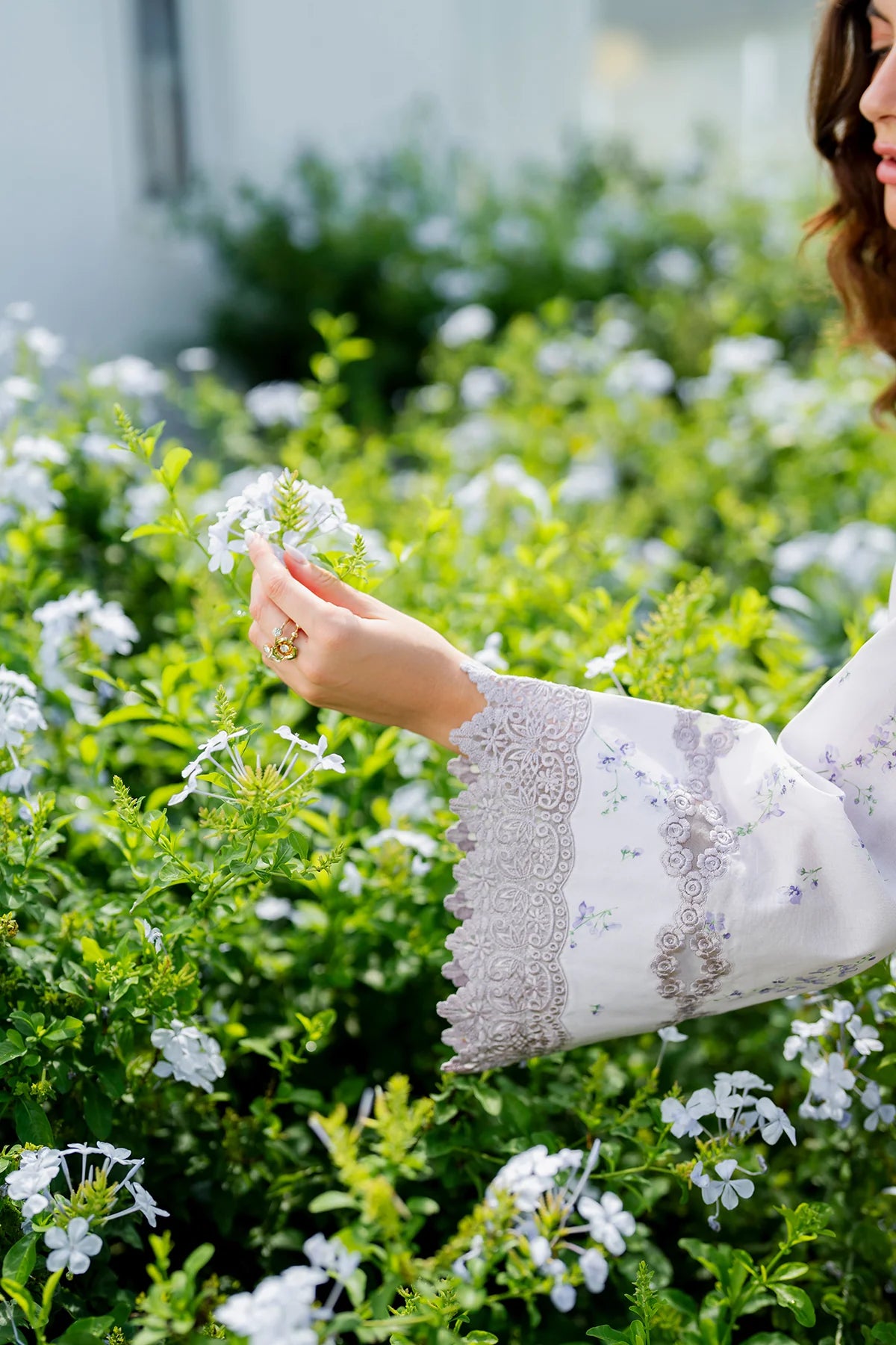 Elevate your wardrobe with this exquisite three-piece ensemble that seamlessly blends traditional craftsmanship with modern design. Delicate embroidered organza borders frame the silhouette with refined elegance, while coordinating embroidered sleeves add intricate detailing. The digitally printed lawn creates striking visual interest across the front, back, and trouser, offering contemporary flair. Completed with a luxurious silk dupatta featuring complementary digital prints, this collection delivers a polished, cohesive aesthetic perfect for formal occasions and celebrations.