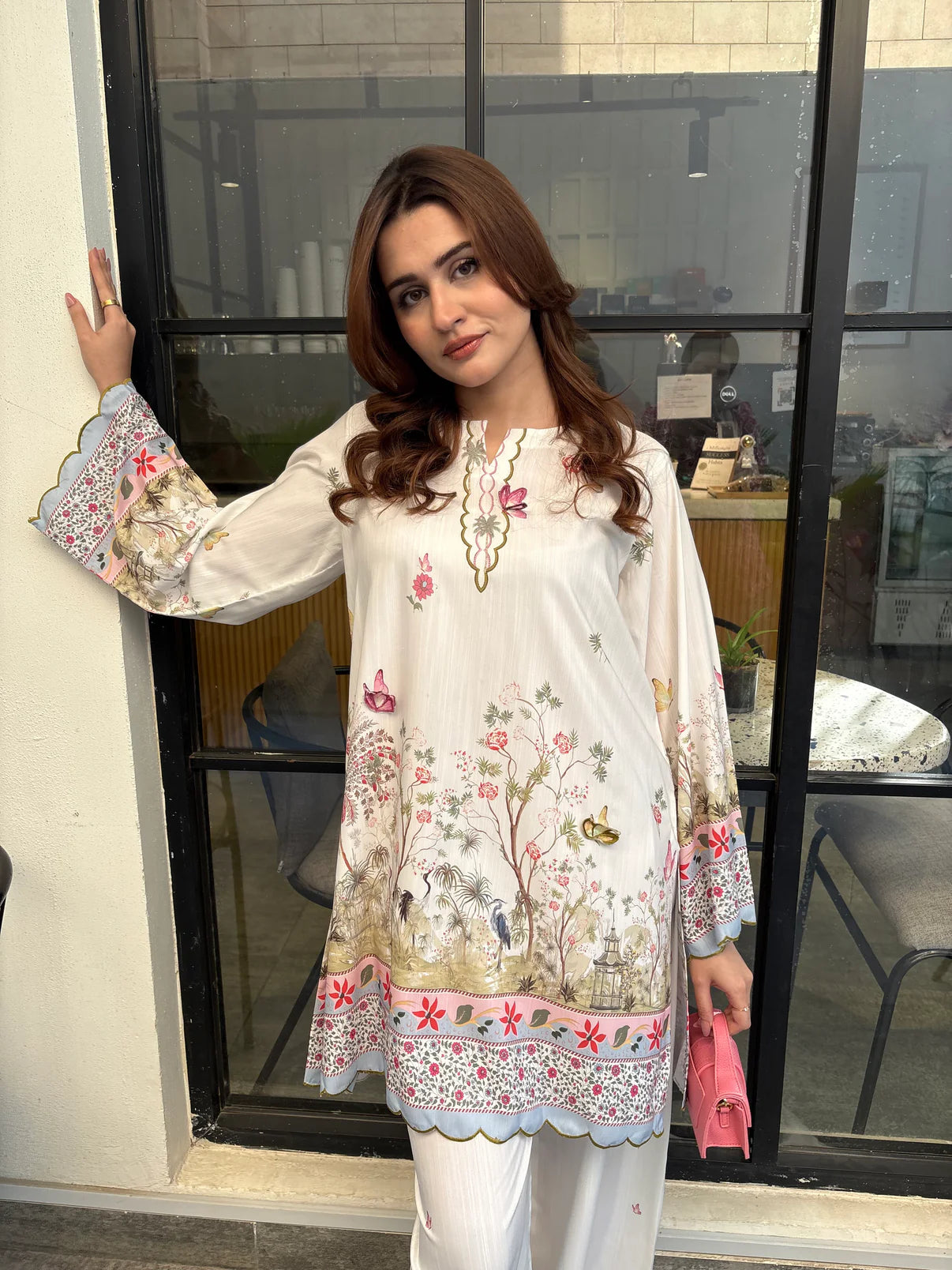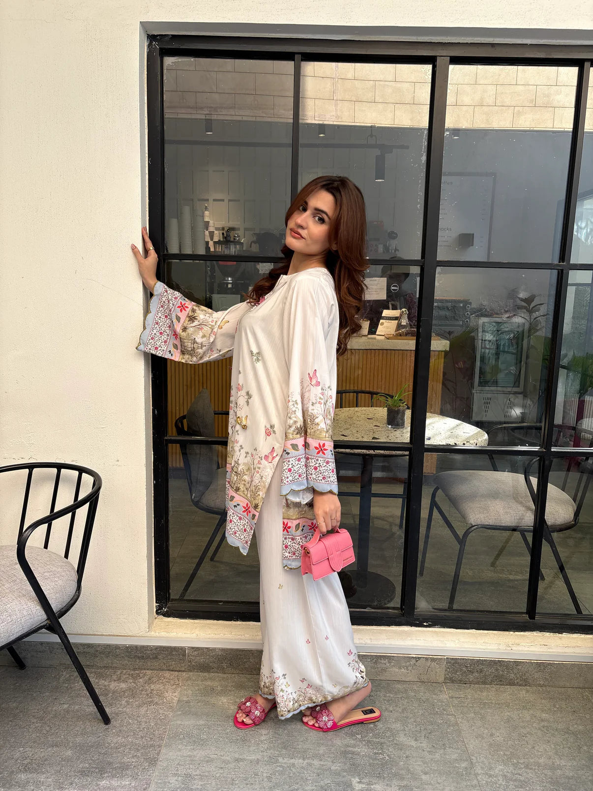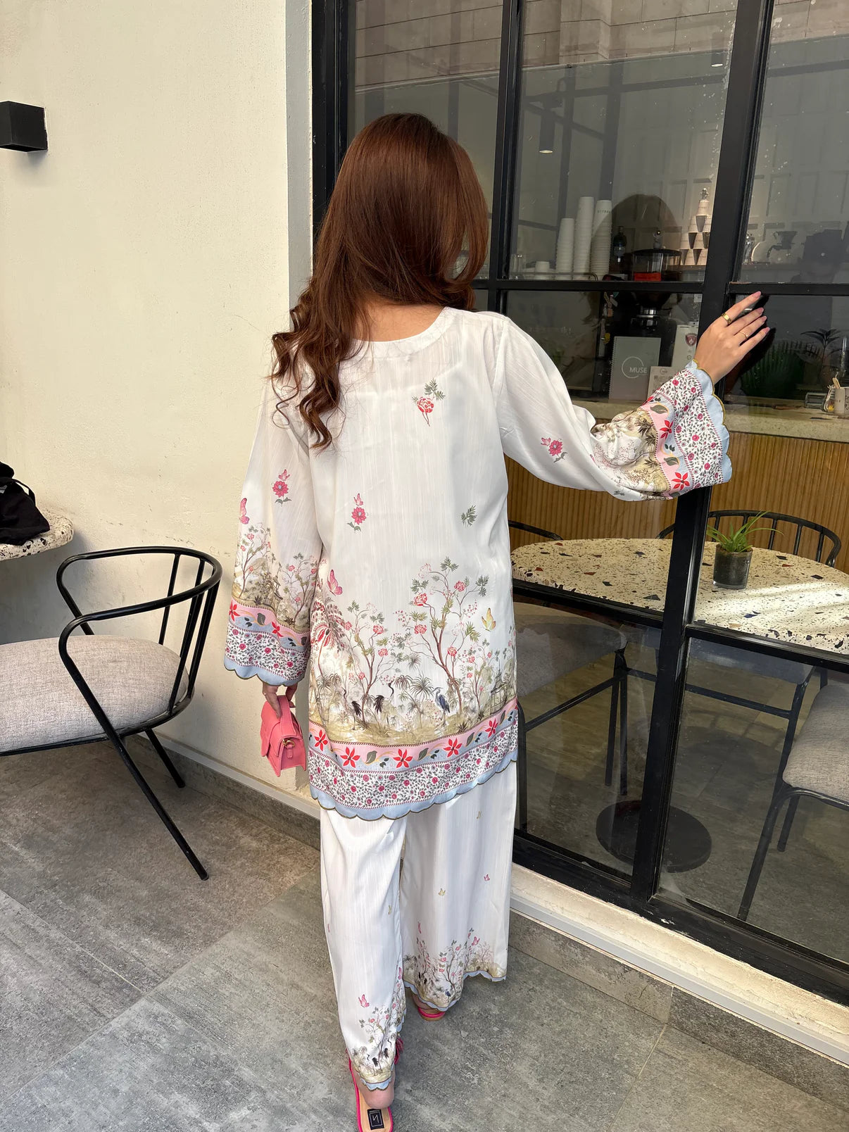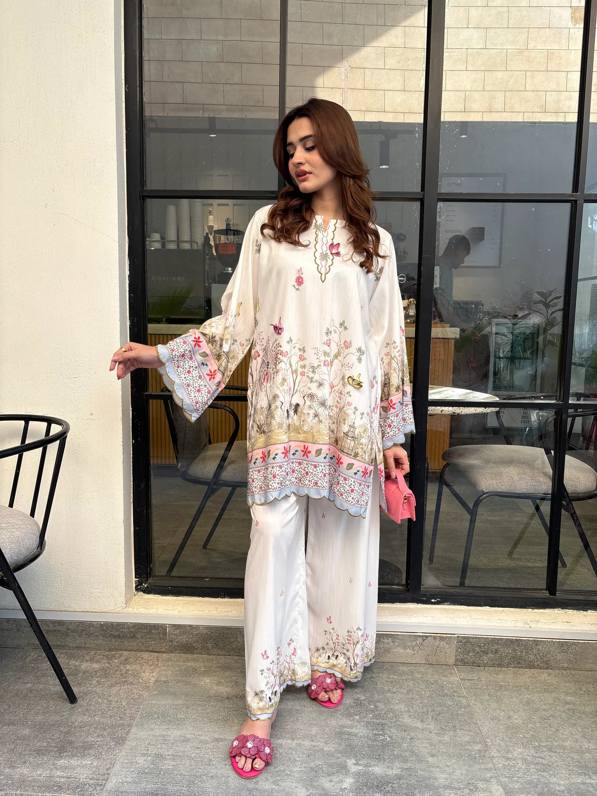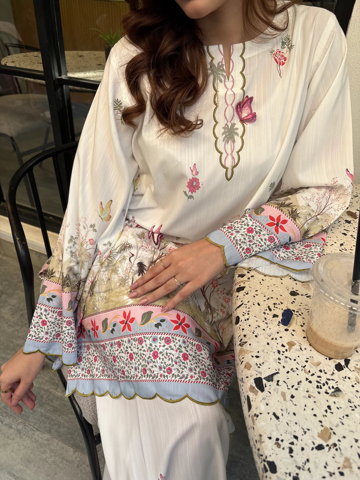 Intricate 3d butterflies and scallop details adorn the sleeves, Daman front back and bottoms complemented by loose trousers . Check the size chart in the pictures to find your perfect size.