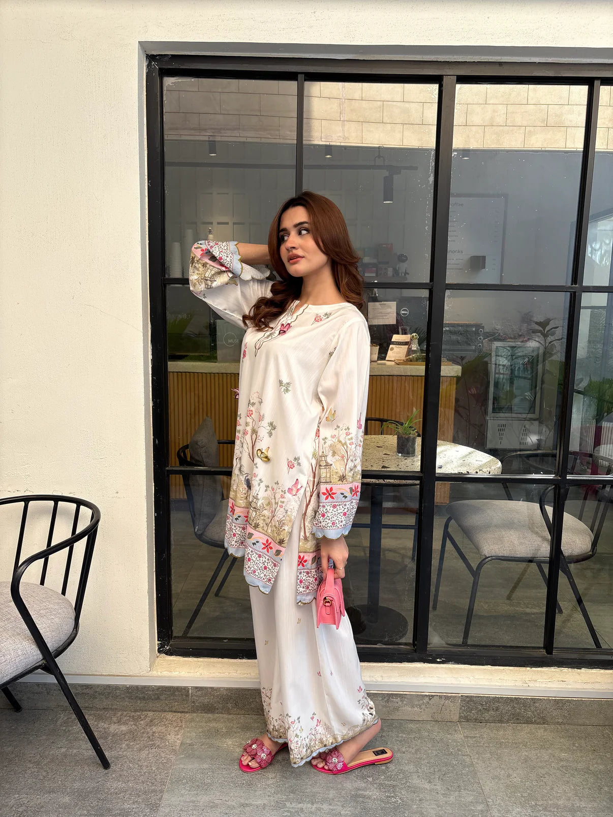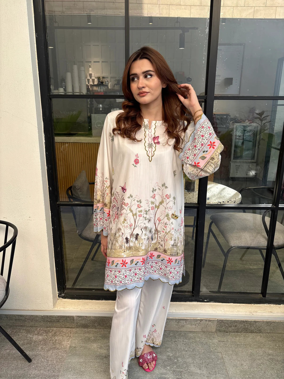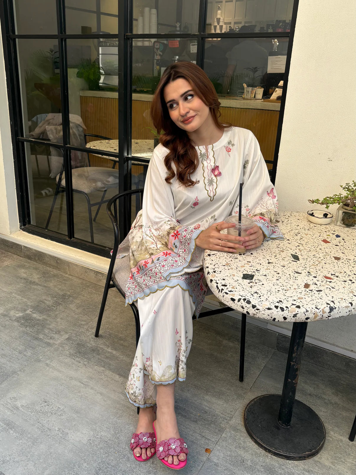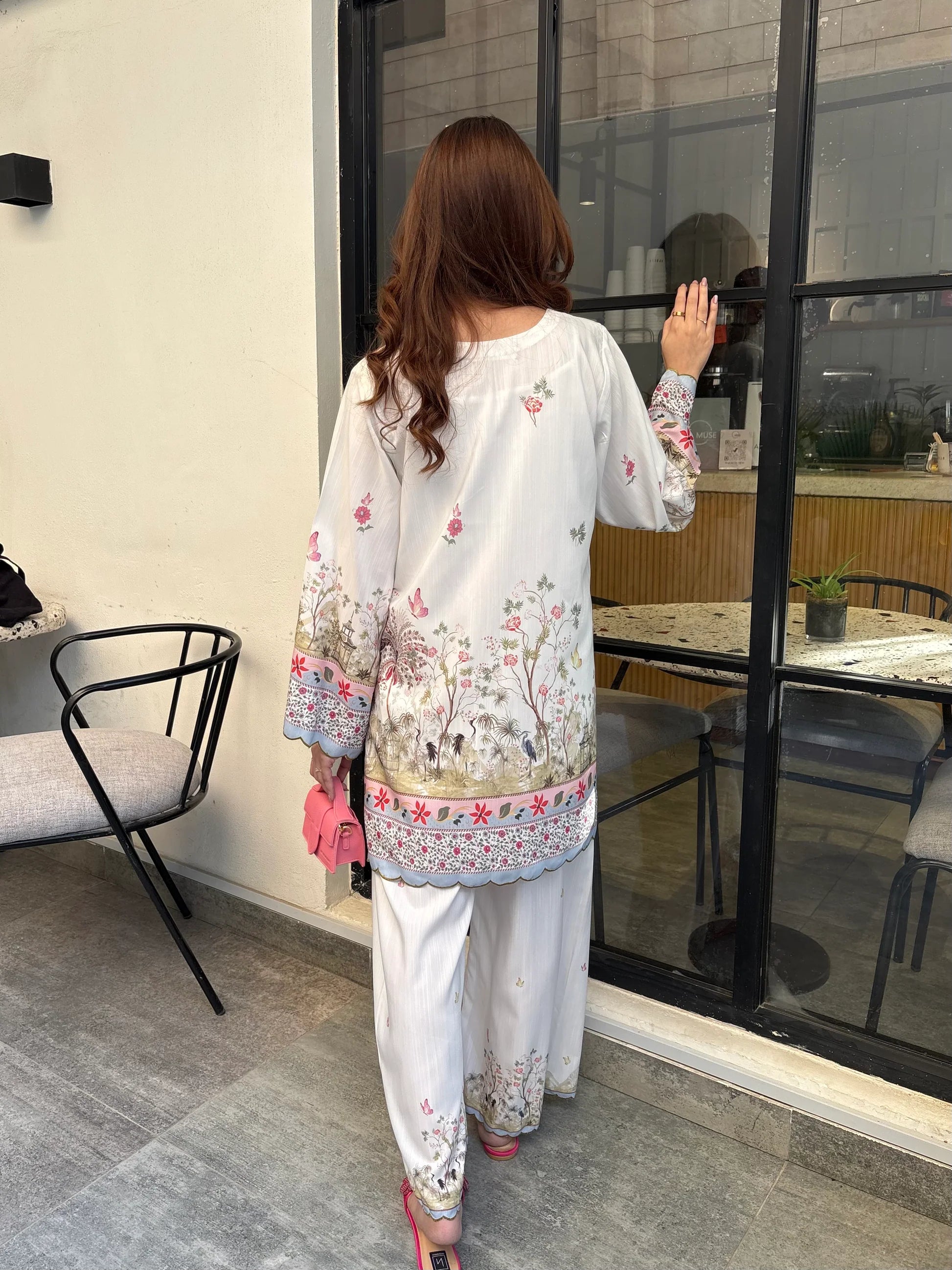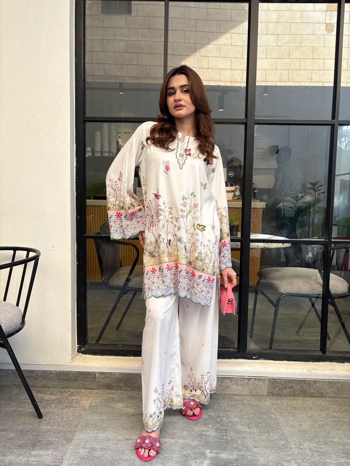 Intricate 3d butterflies and scallop details adorn the sleeves, Daman front back and bottoms complemented by loose trousers . Check the size chart in the pictures to find your perfect size.