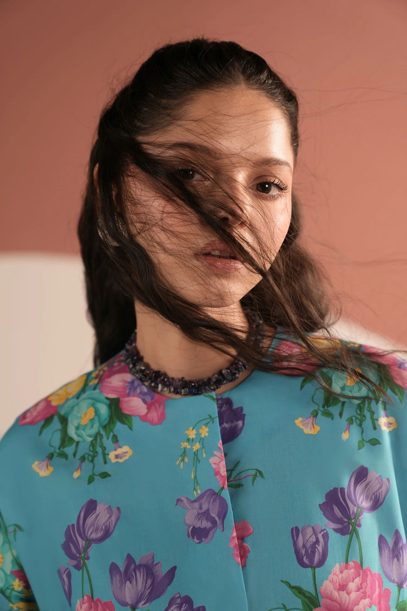 Fresh and fearless, Turquoise Muse is a throwback to 70’s high fashion with a modern twist. Carnations, poppies, amaryllis, and tulips bloom in shades of purple, ice blue, pink, and yellow across a striking turquoise canvas. Statement bell sleeves add drama, while coordinated bell-bottom pants complete the retro-chic silhouette. Bold, playful, and trend-defining — this coord is autumn’s nod to timeless style.